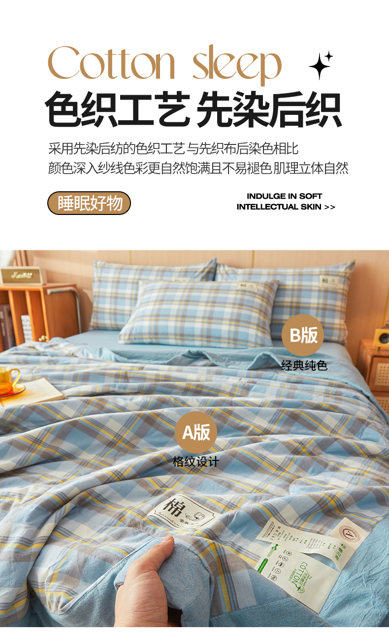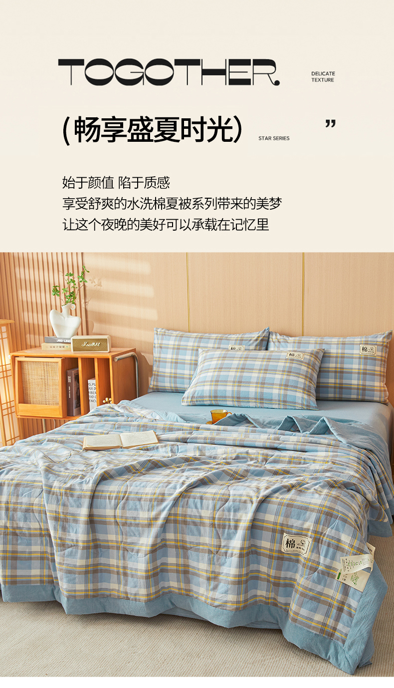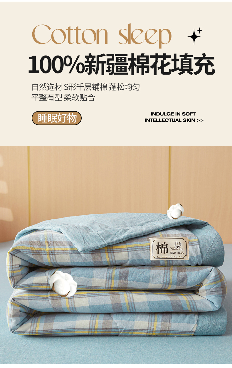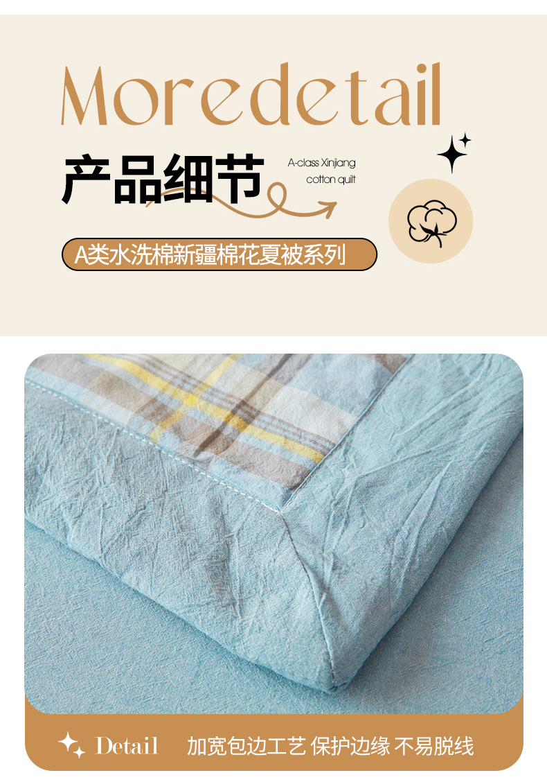 • 91家纺网 家纺一手货源 找家纺 招财星家纺 2025新款无印风新疆棉夏被夏凉被空调被可机洗直播可过质检 格韵蓝灰