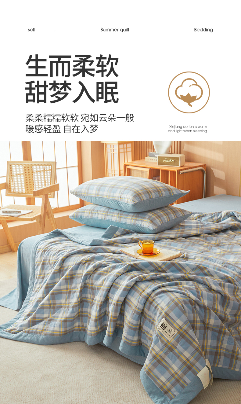 招财星家纺 2025新款无印风新疆棉夏被夏凉被空调被可机洗直播可过质检 格韵蓝灰