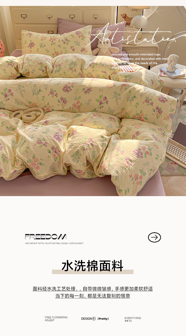 当前位置: 91家纺网 > 商品网购 > 床品套件 > 四件套 > 水洗棉四件套 > 韩巢家纺 2025新款超柔水洗棉印花被套床单床上用品四件套 流心奶糕