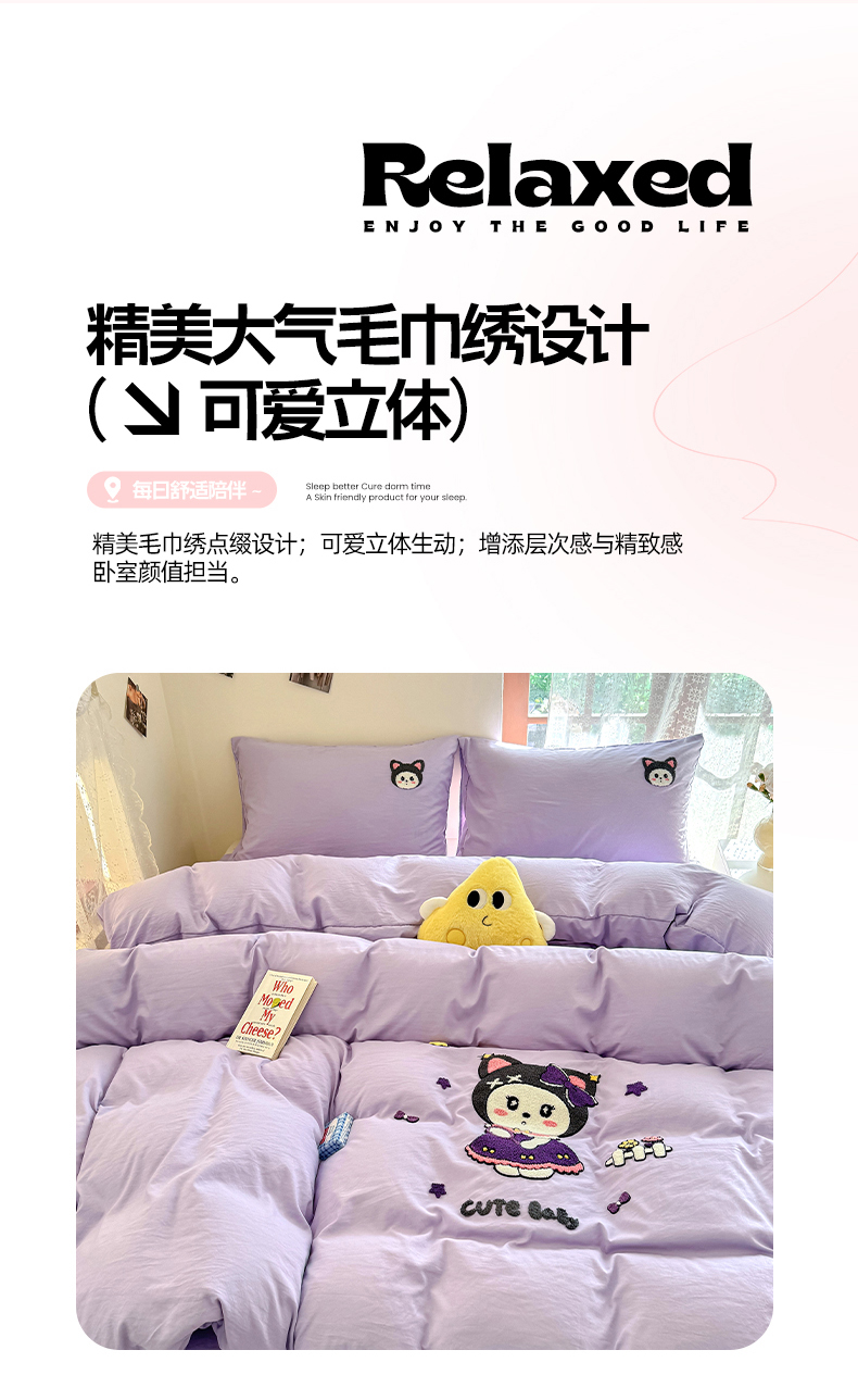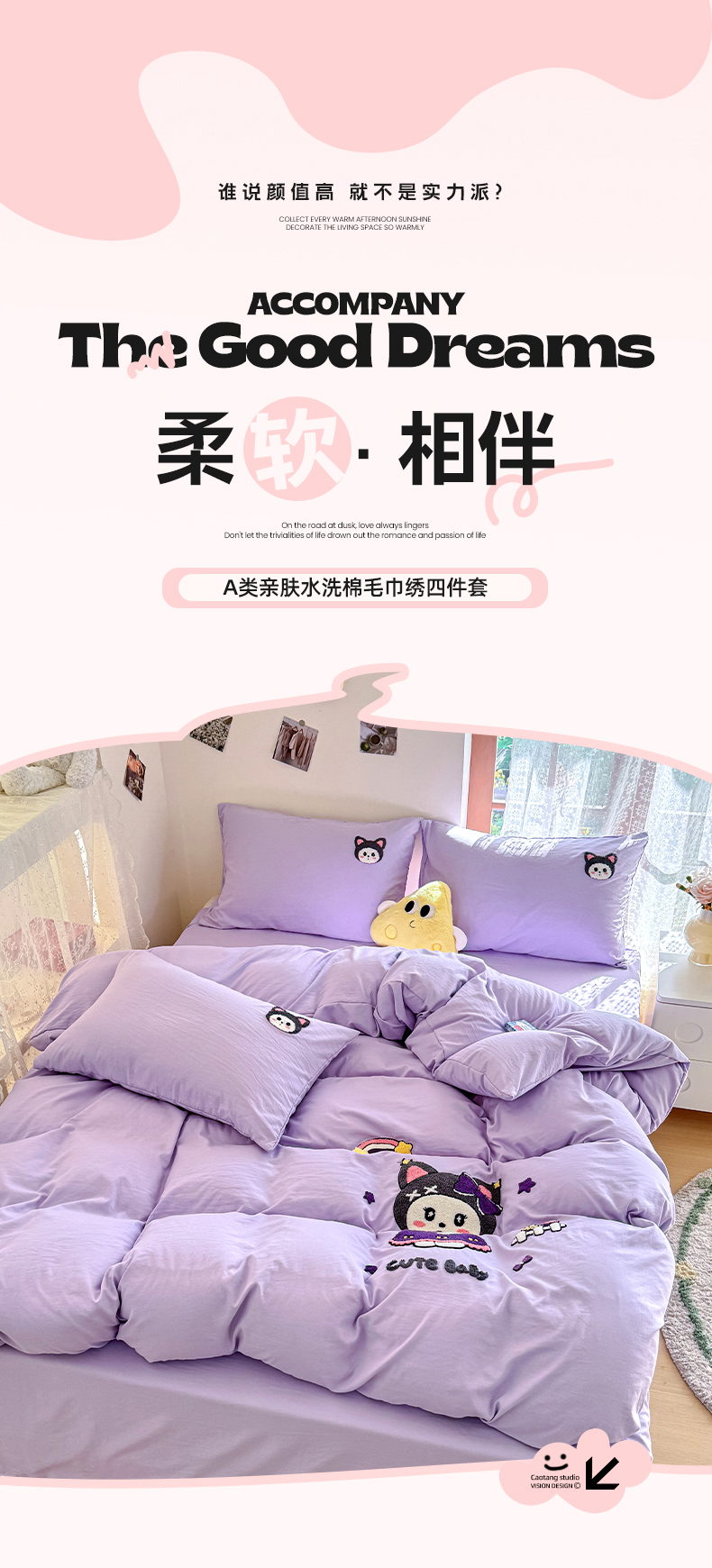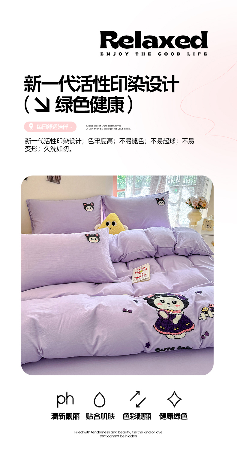 当前位置: 91家纺网 > 商品网购 > 床品套件 > 四件套 > 水洗棉四件套 > 优卡迪家纺馆 2025新款A类亲肤水洗棉毛巾绣四件套(下载文件夹包含买家秀) 幸运女孩-浅紫