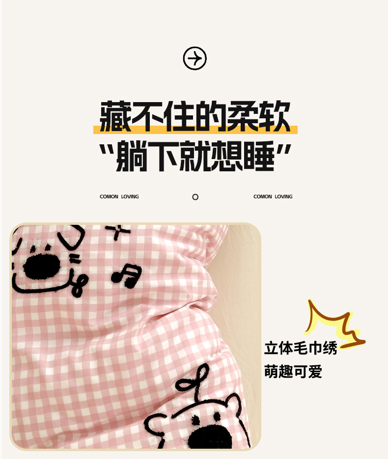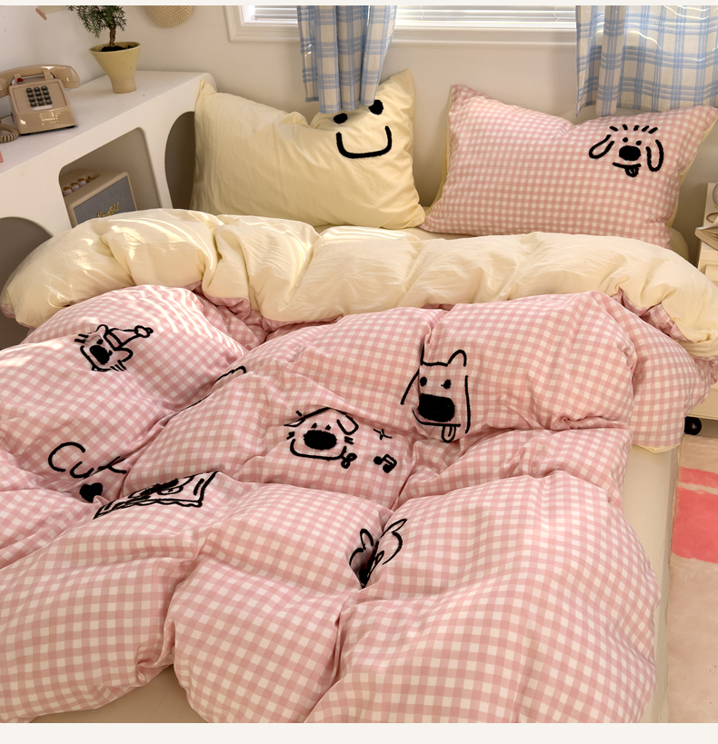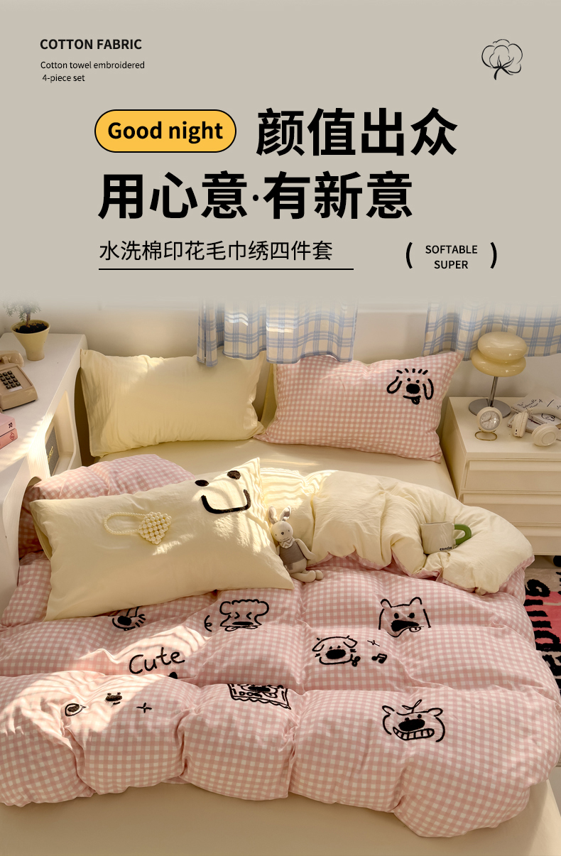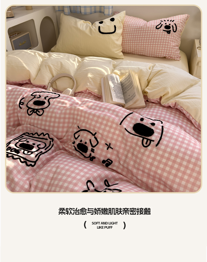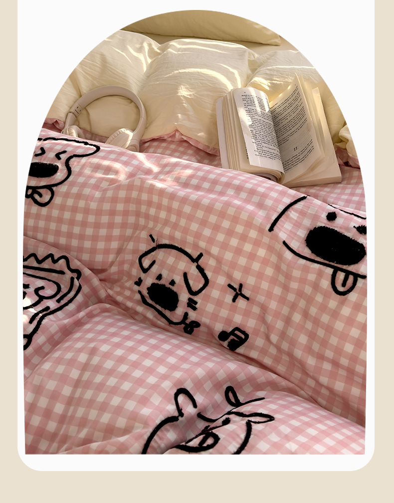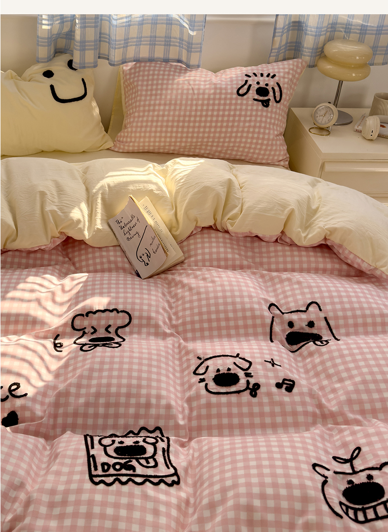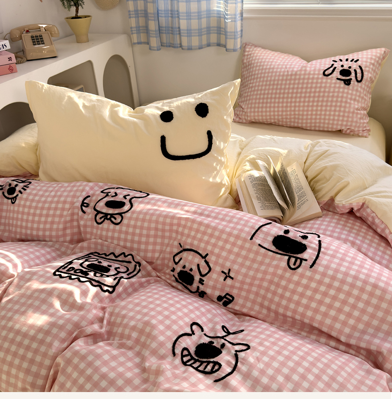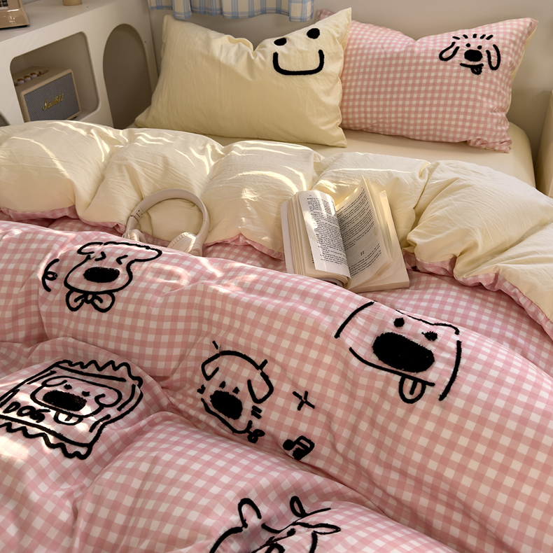 当前位置: 91家纺网 > 商品网购 > 床品套件 > 四件套 > 水洗棉四件套 > 优兰朵 2025新款亲肤卡通水洗棉毛巾绣学生床品四件套 童趣涂鸦粉