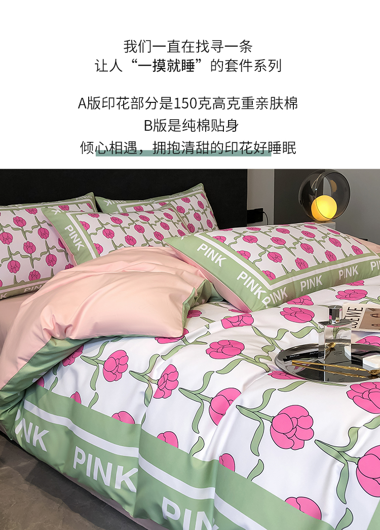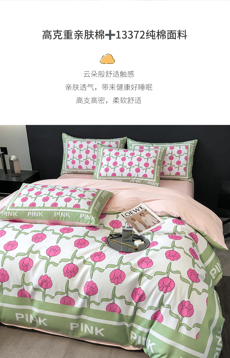 当前位置: 91家纺网 > 商品网购 > 床品套件 > 四件套 > 全棉普通四件套 > (买家秀 爆款不断货)新款高克重亲肤棉+13372全棉纯棉四件套全棉纯棉三件套轻奢风四件套直播 轻奢粉色郁金香