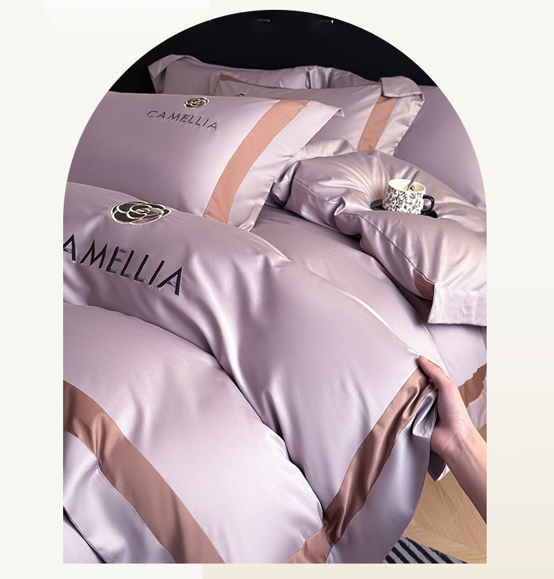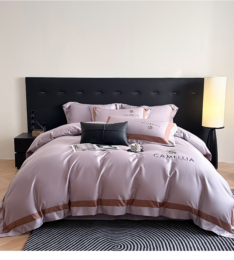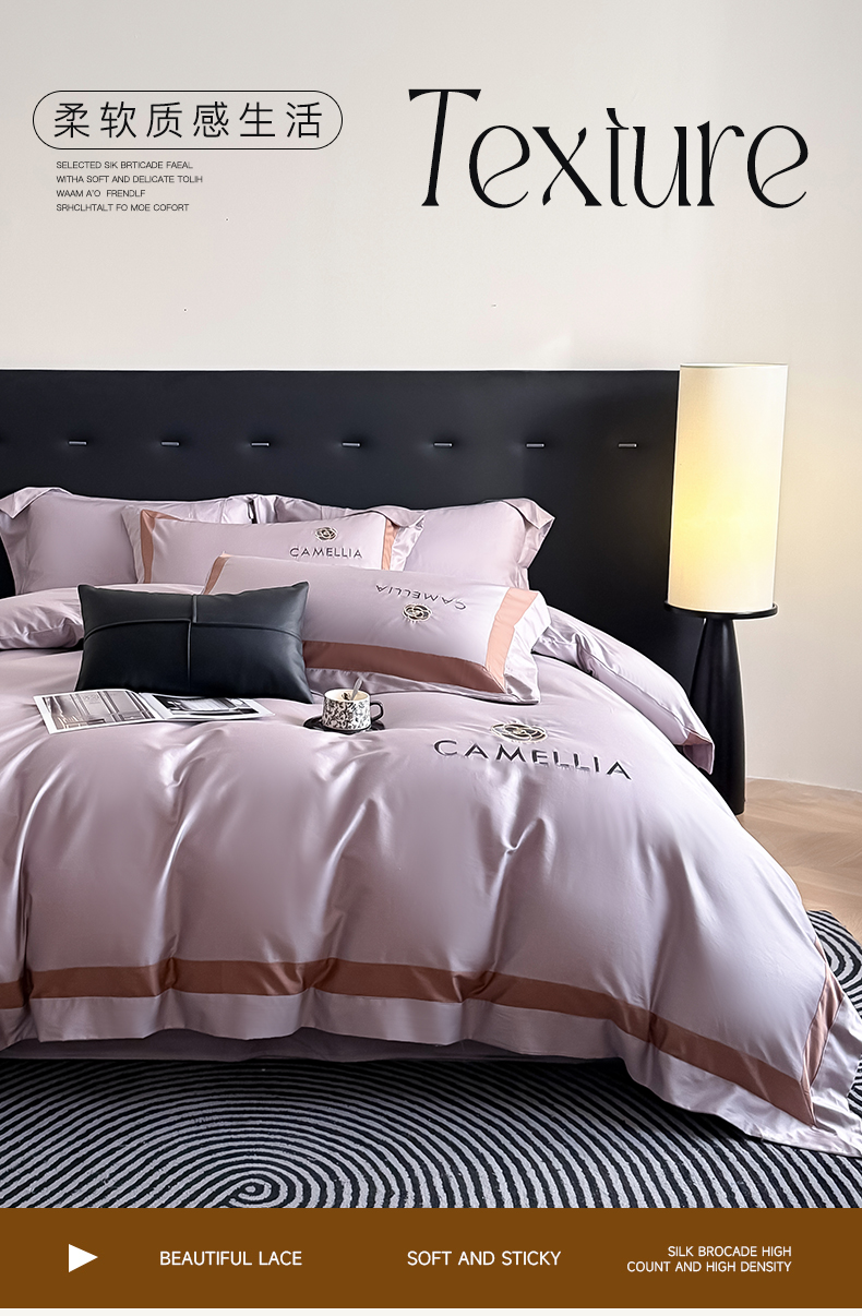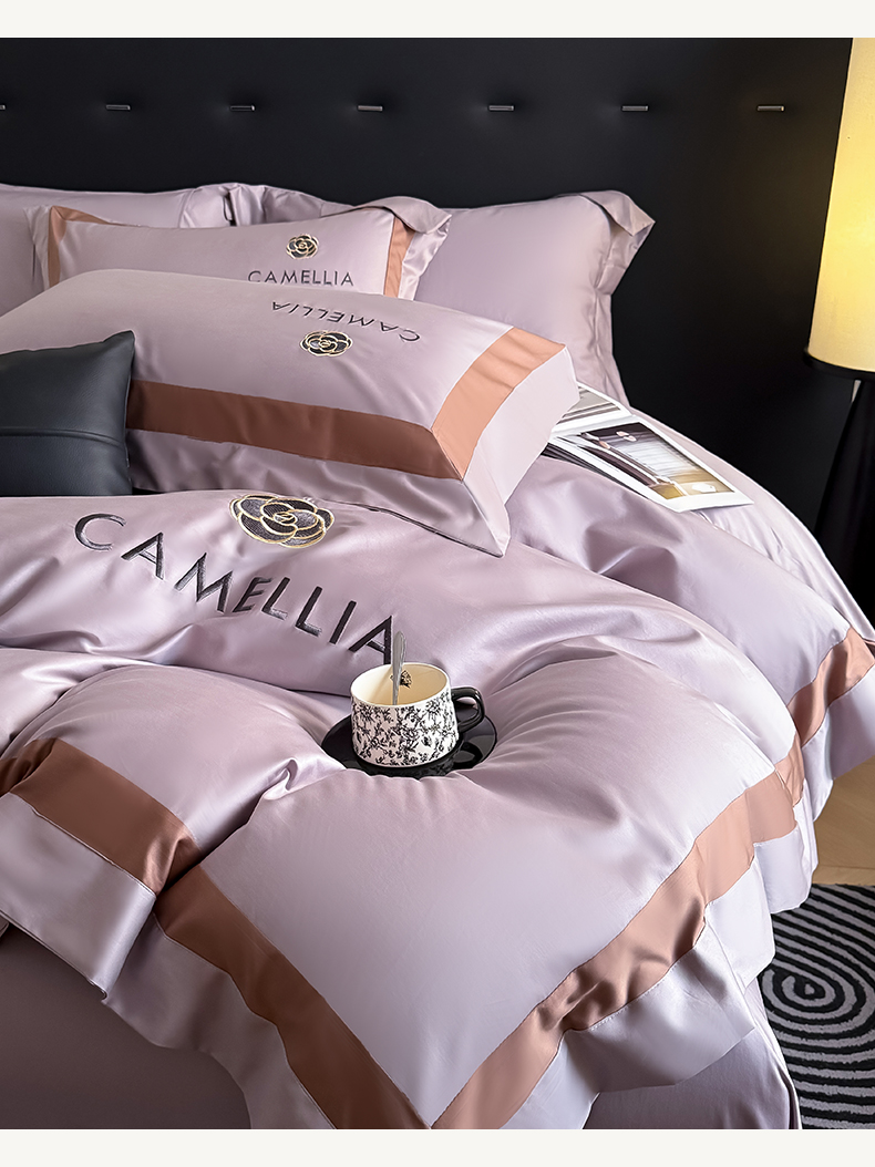 水云缦 2025新款轻奢全棉双拼角绣花四件套-米兰系列 米兰-香芋紫