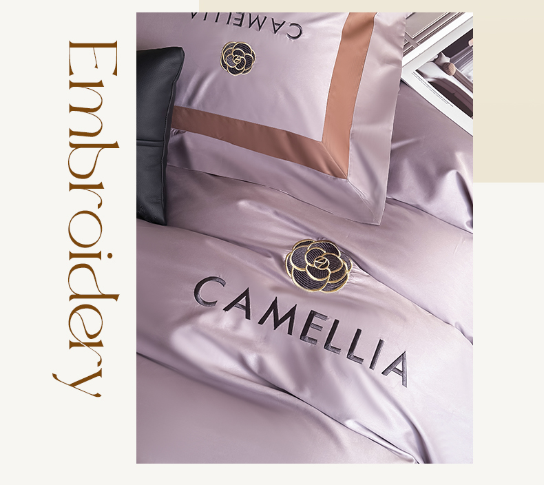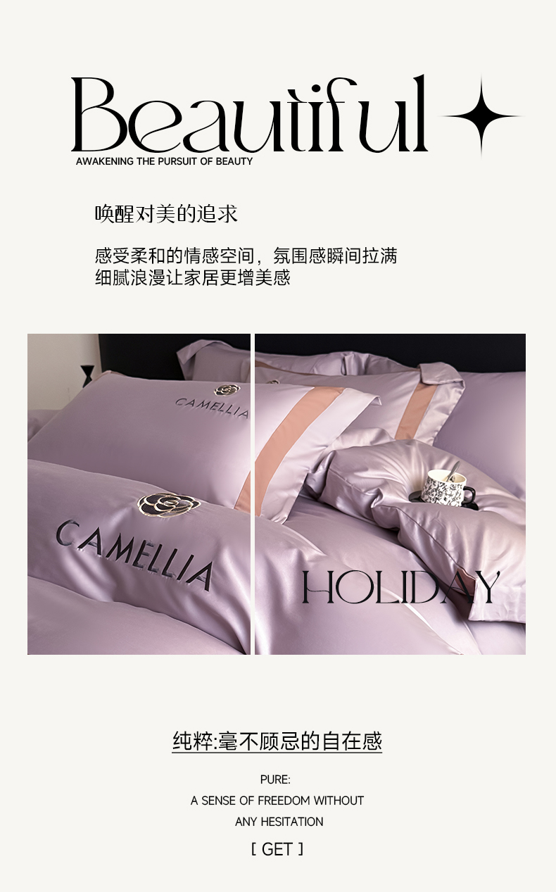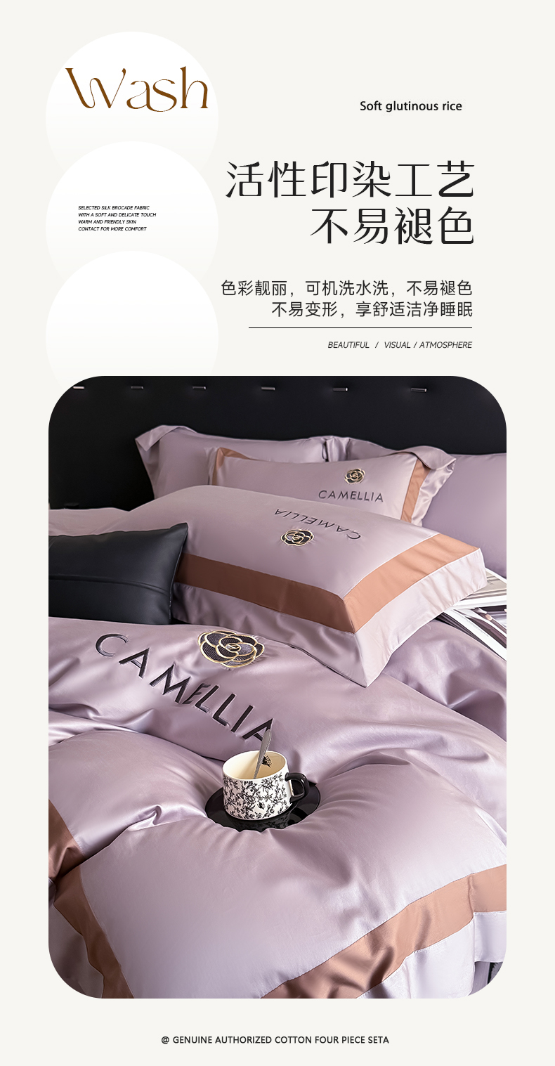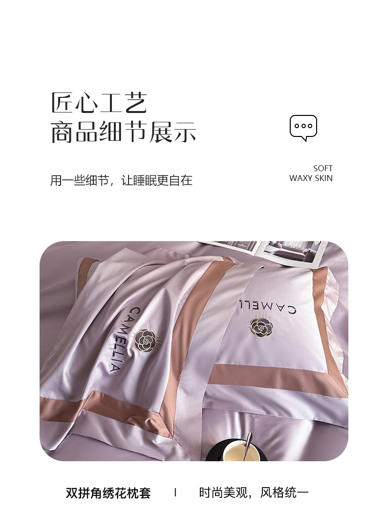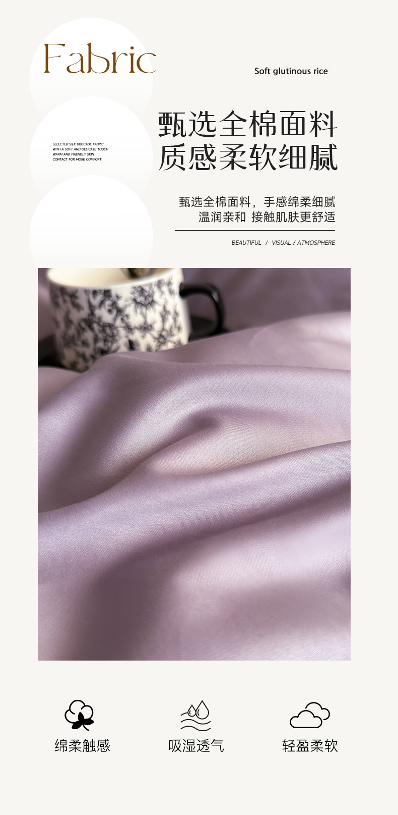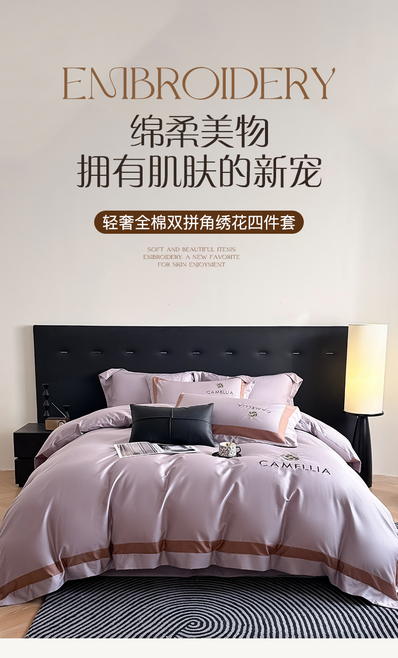 商品名称:水云缦 2025新款轻奢全棉双拼角绣花四件套-米兰系列 米兰-香芋紫