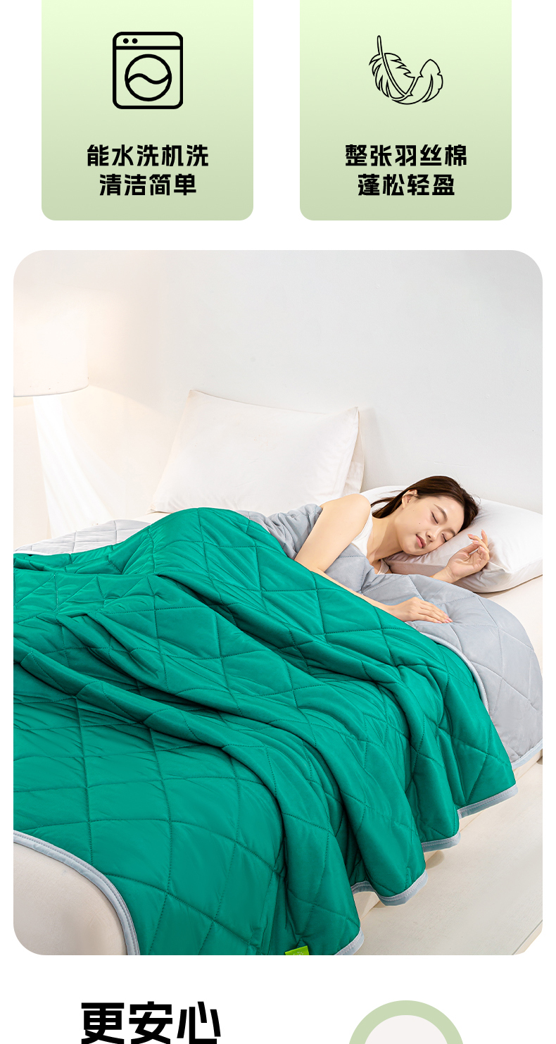 商品名称:憨豆家纺 2025春夏新款凉感丝夏凉被冰淇淋纯色夏被空调被夏季薄被子直播外贸跨境爆款 墨绿