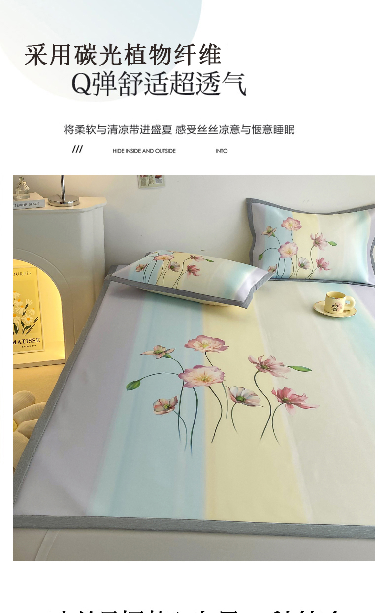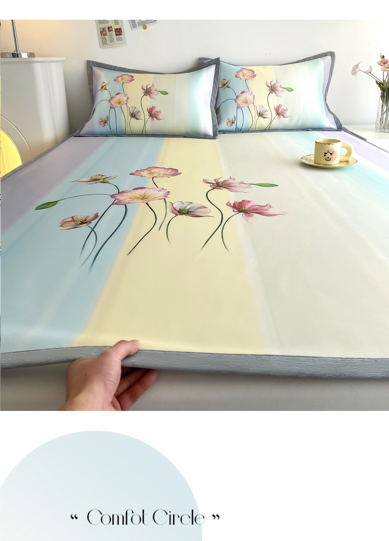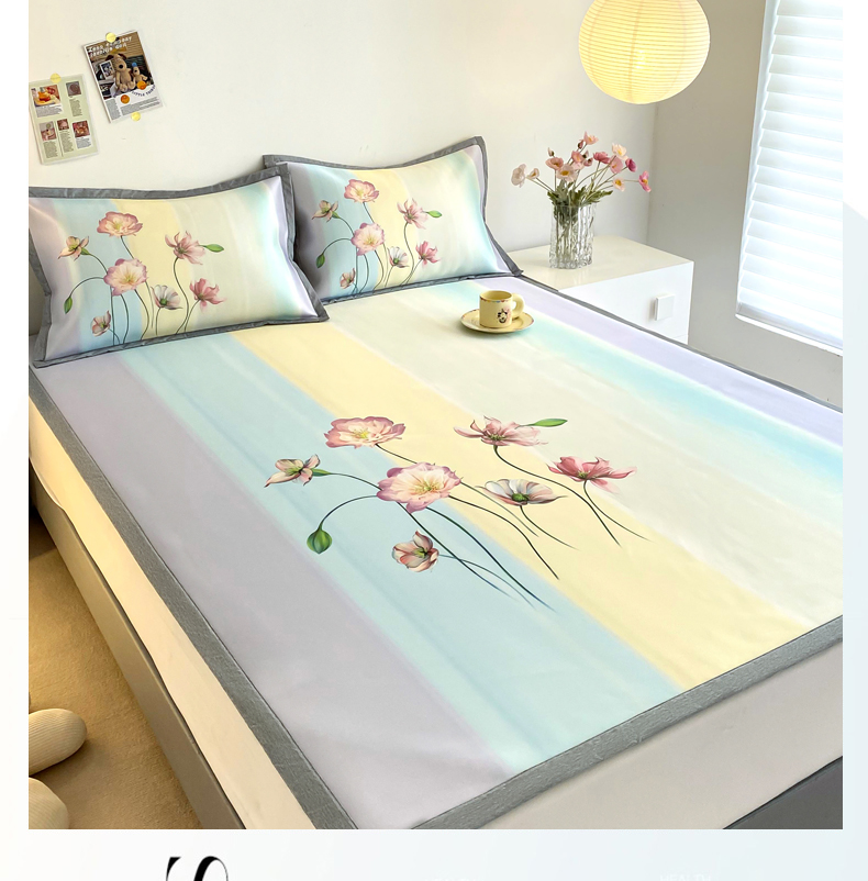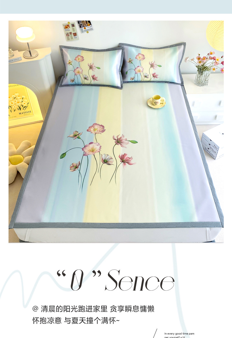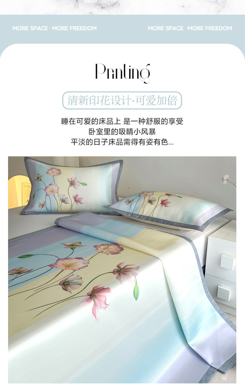 商品名称:邵依 2025新款数码印花烫光冰丝席凉席子藤席 萱花紫兰