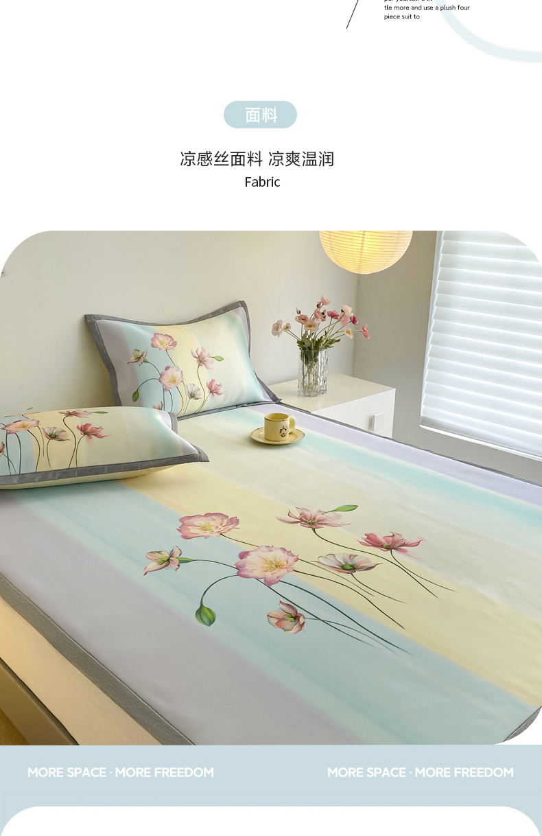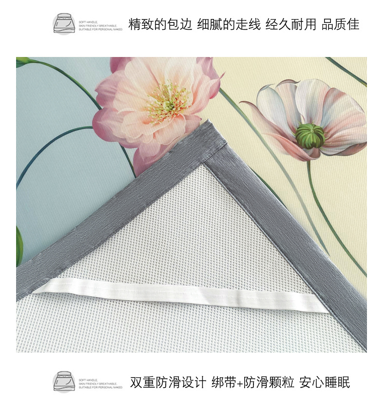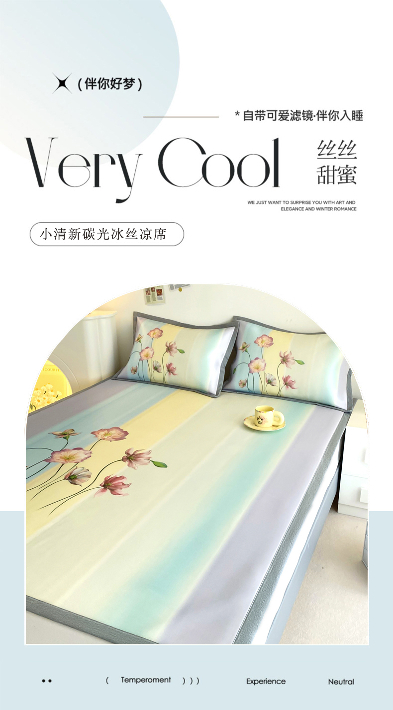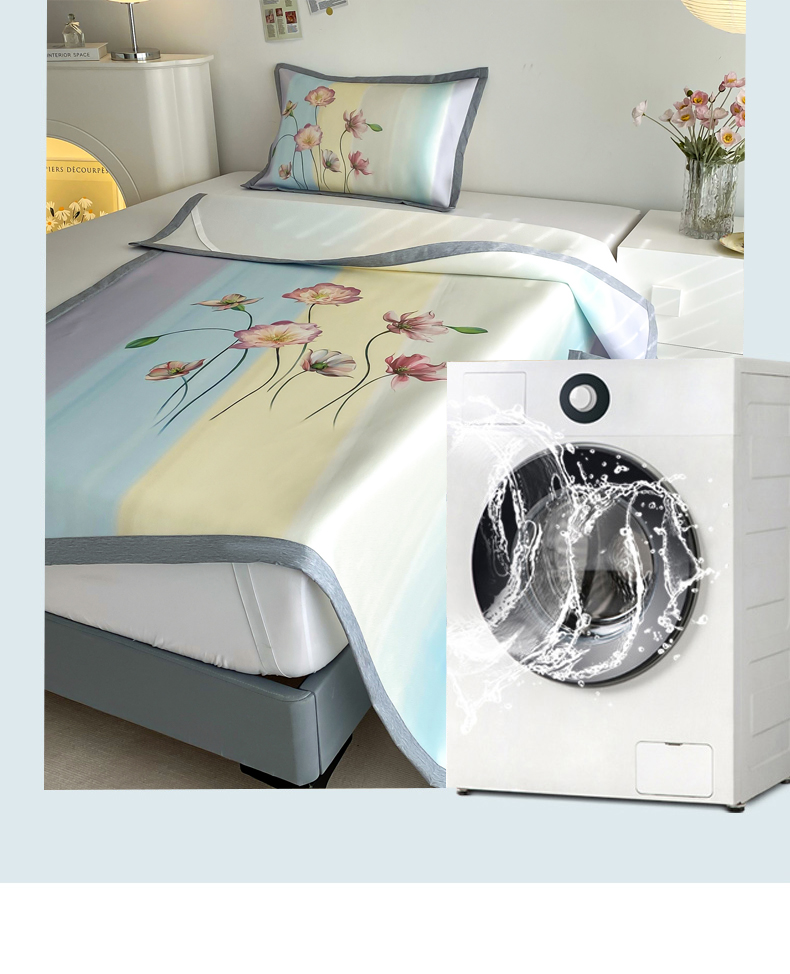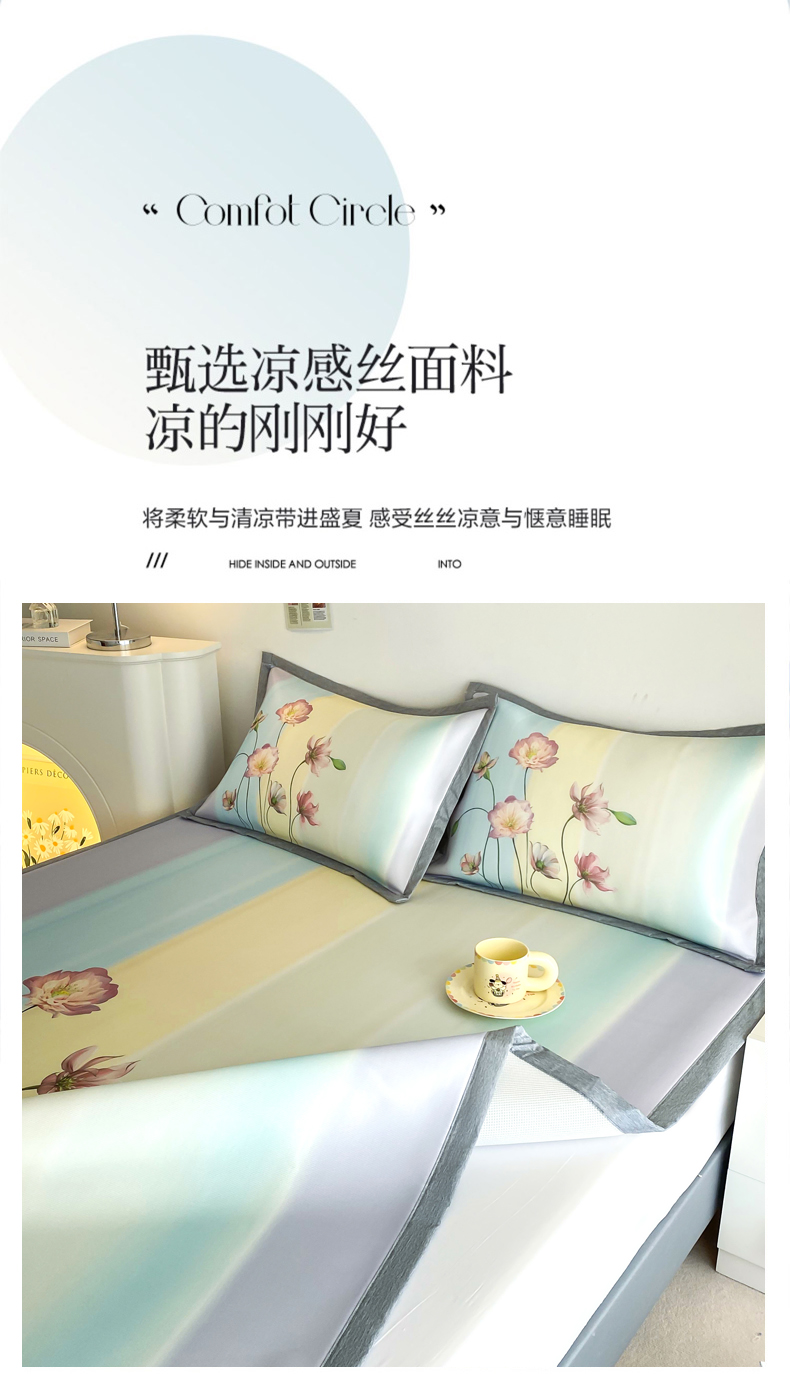 商品名称:邵依 2025新款数码印花烫光冰丝席凉席子藤席 萱花紫兰