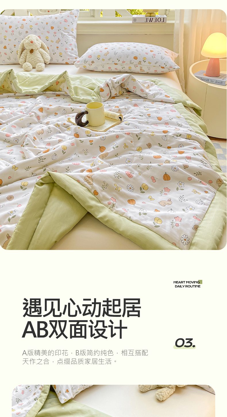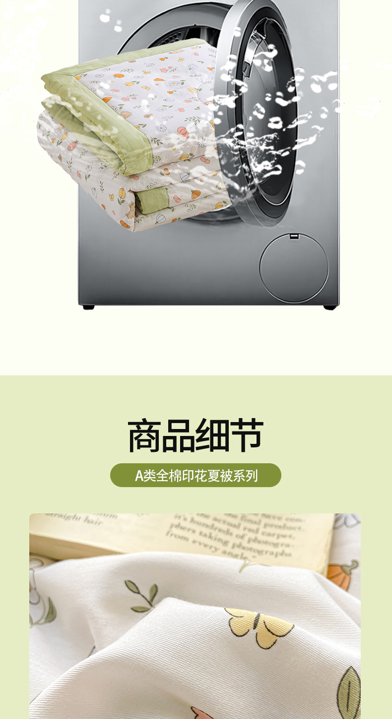 商品名称:憨豆家纺 2025新款双面全棉夏被可机洗小清新纯棉夏被薄被芯空调被子夏凉被 春风拂面