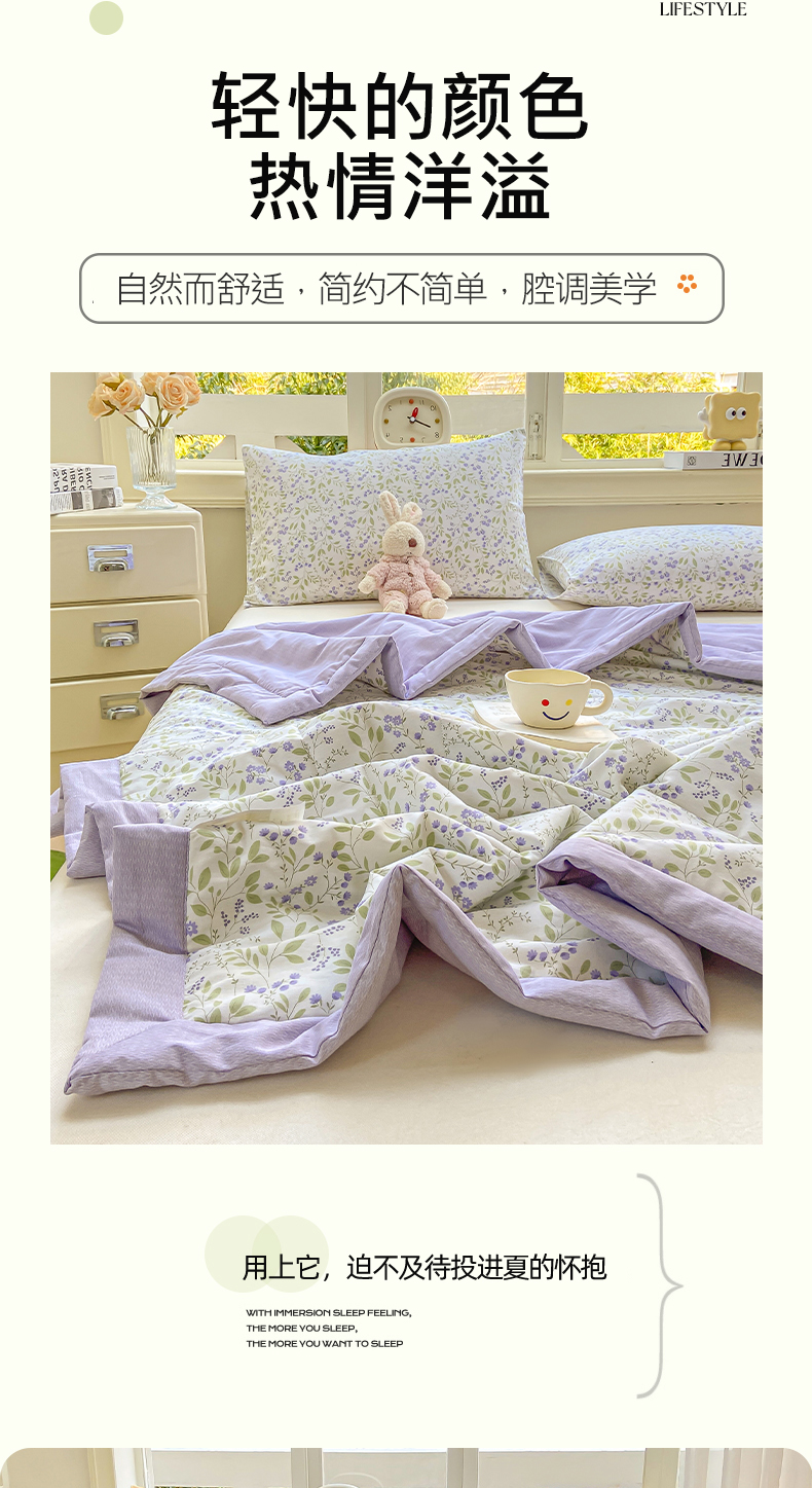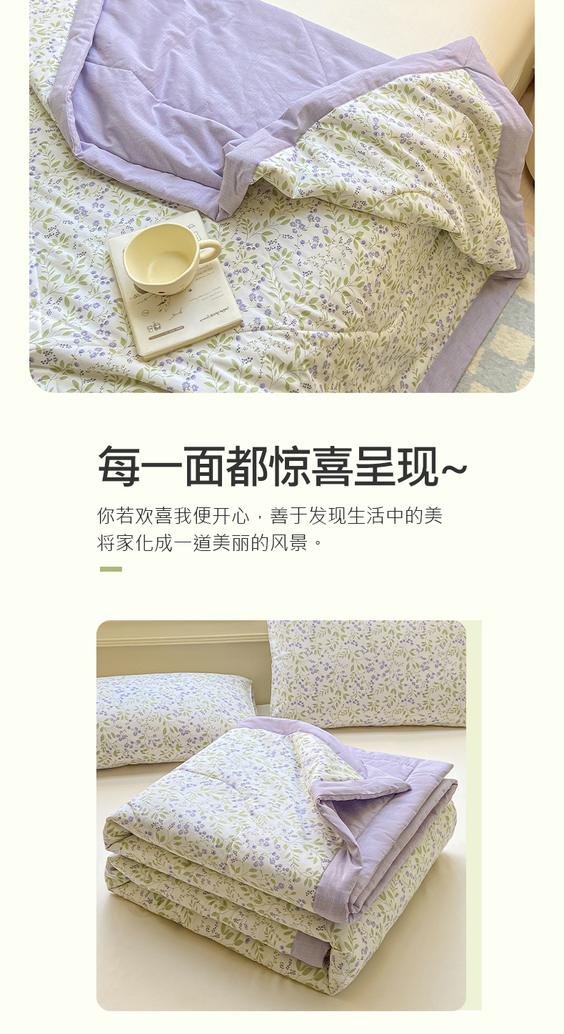 商品名称:憨豆家纺 2025新款双面全棉夏被可机洗小清新纯棉夏被薄被芯空调被子夏凉被 千野-紫