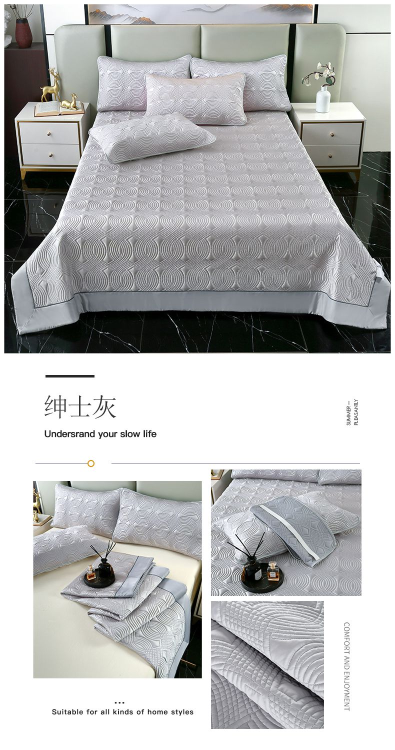 OL家纺2025新款冰丝绸夏被床盖款三件套 天空蓝