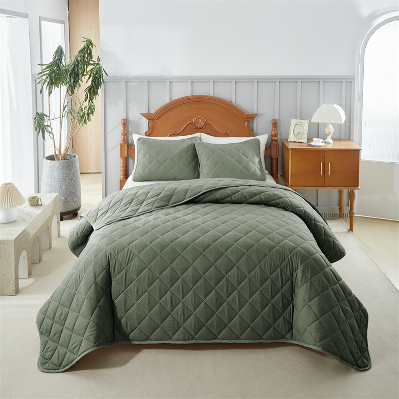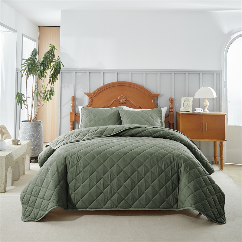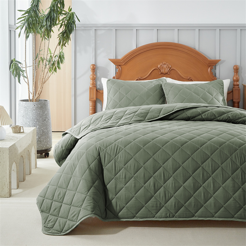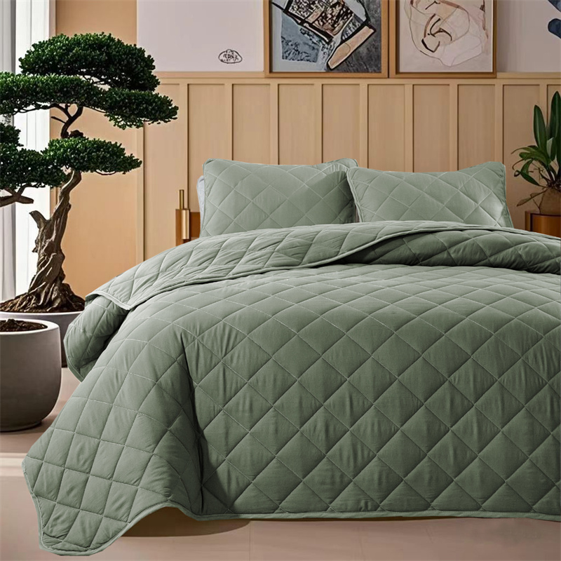 温宁2025新款跨境外贸专供斜方格床盖 绿色