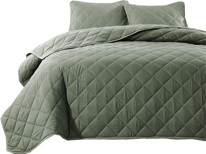 (总)温宁2025新款跨境外贸专供正方格床盖,绿色,米色,银灰