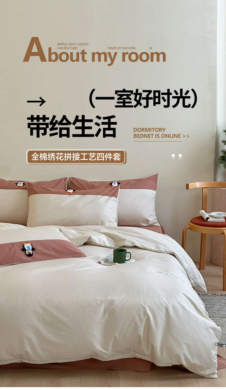 标准四件套:被套200*230床单245*250枕套48*74*2只