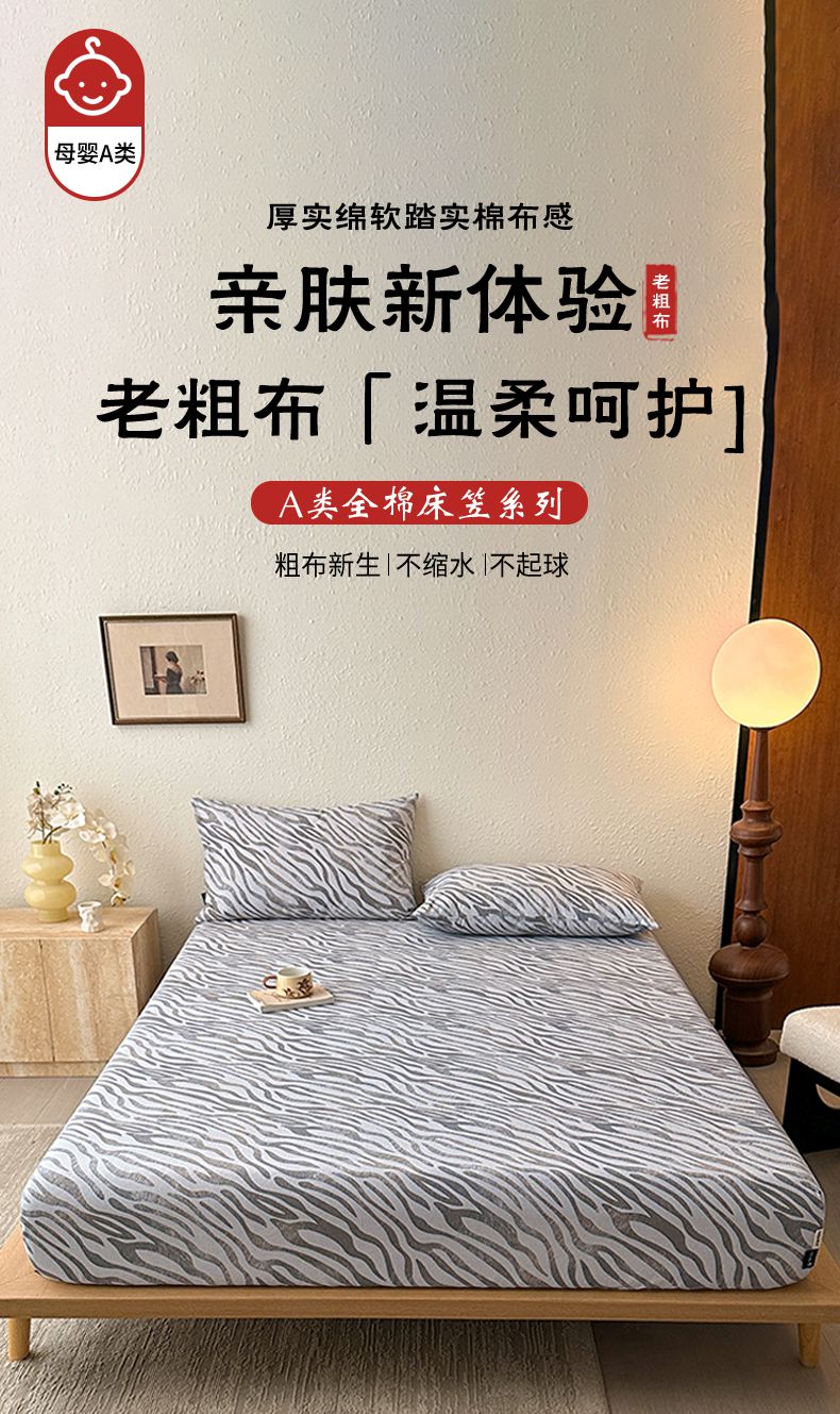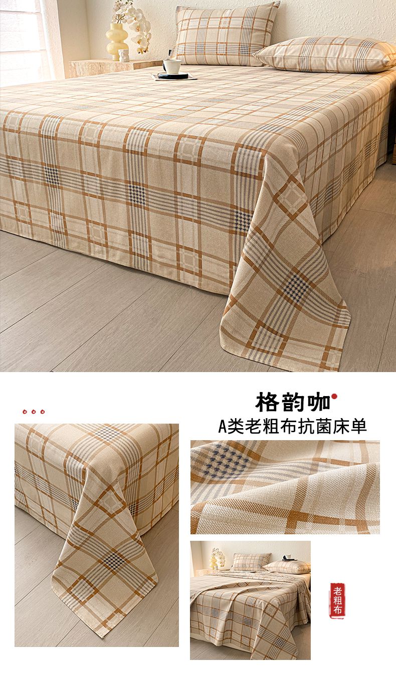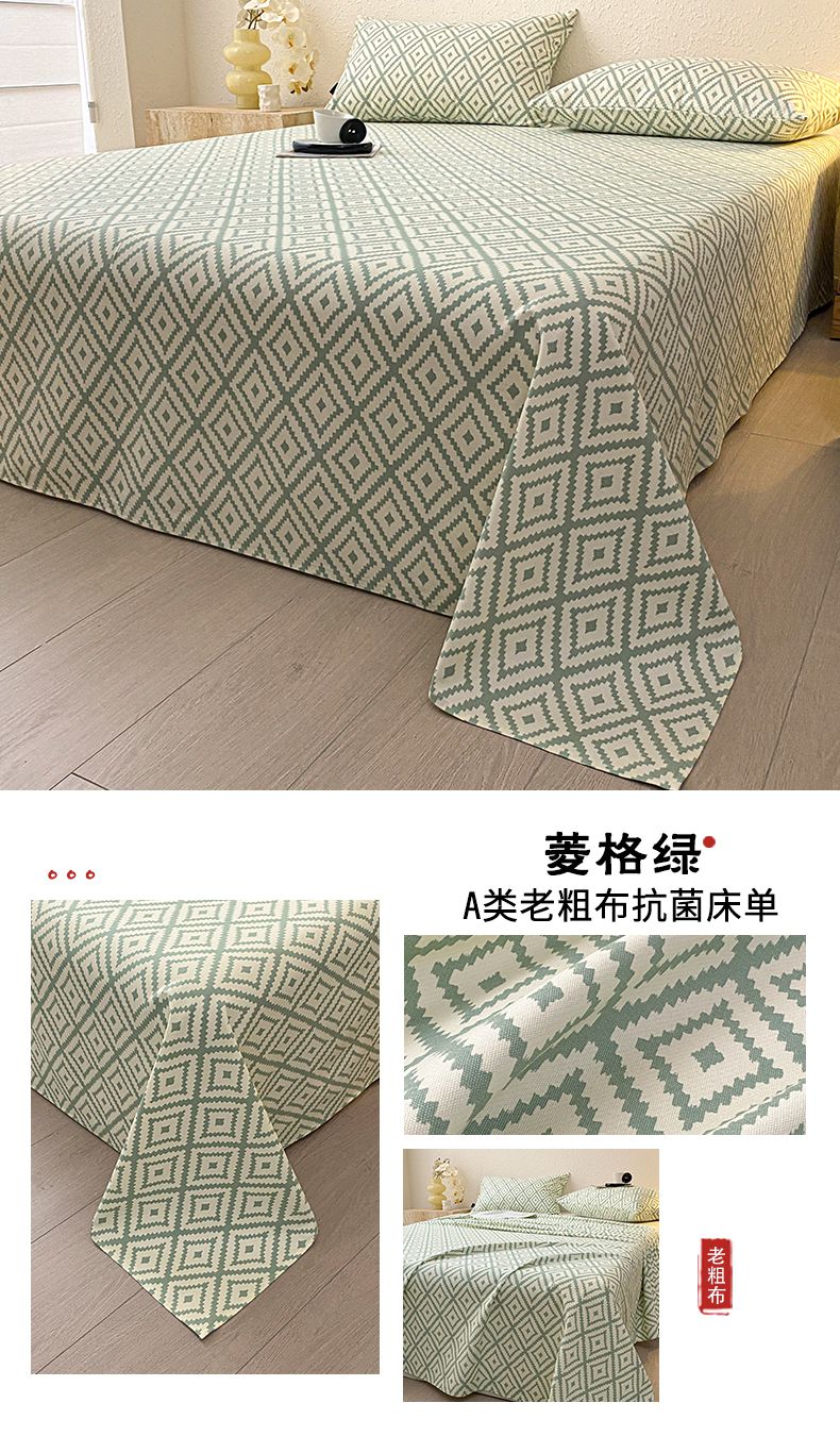 (总)鑫钰 2025新款老粗布床单床笠系列-格纹系列,豹纹灰,格韵咖,菱格灰,菱格绿,青缇格,水墨纹