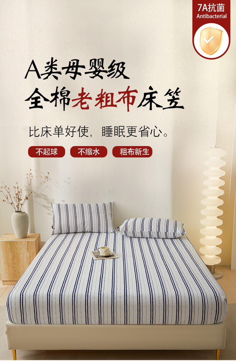 • 91家纺网 家纺一手货源 找家纺 鑫钰2025新款纯棉全棉老粗布床笠--北欧风 胡里奥(兰)
