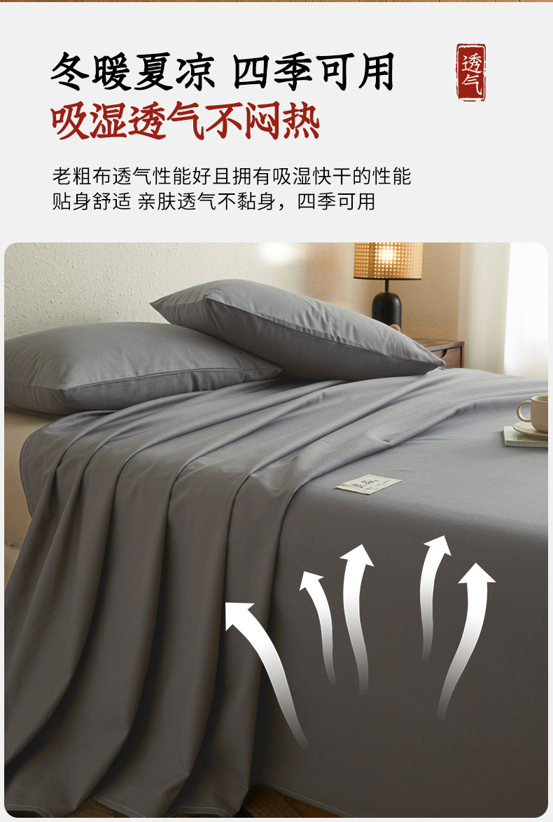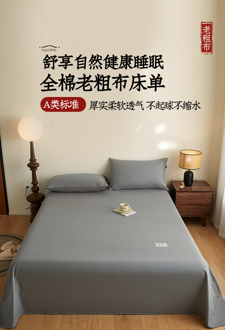 商品名称:鑫钰2025新款纯棉全棉老粗布床单--LP纯色系列 深灰
