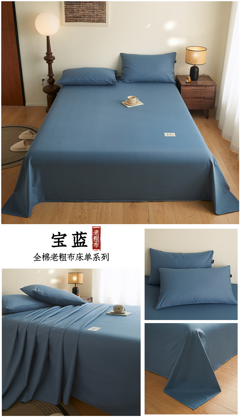(总)鑫钰2025新款纯棉全棉老粗布床单--LP纯色系列,宝蓝,川青,黛紫,卡其,浅蓝,深灰,烟灰