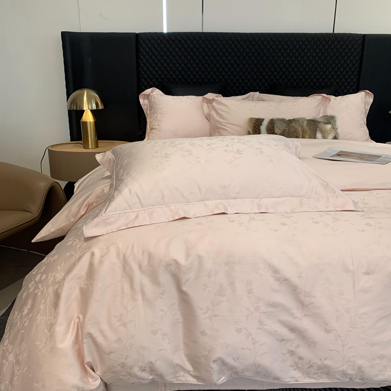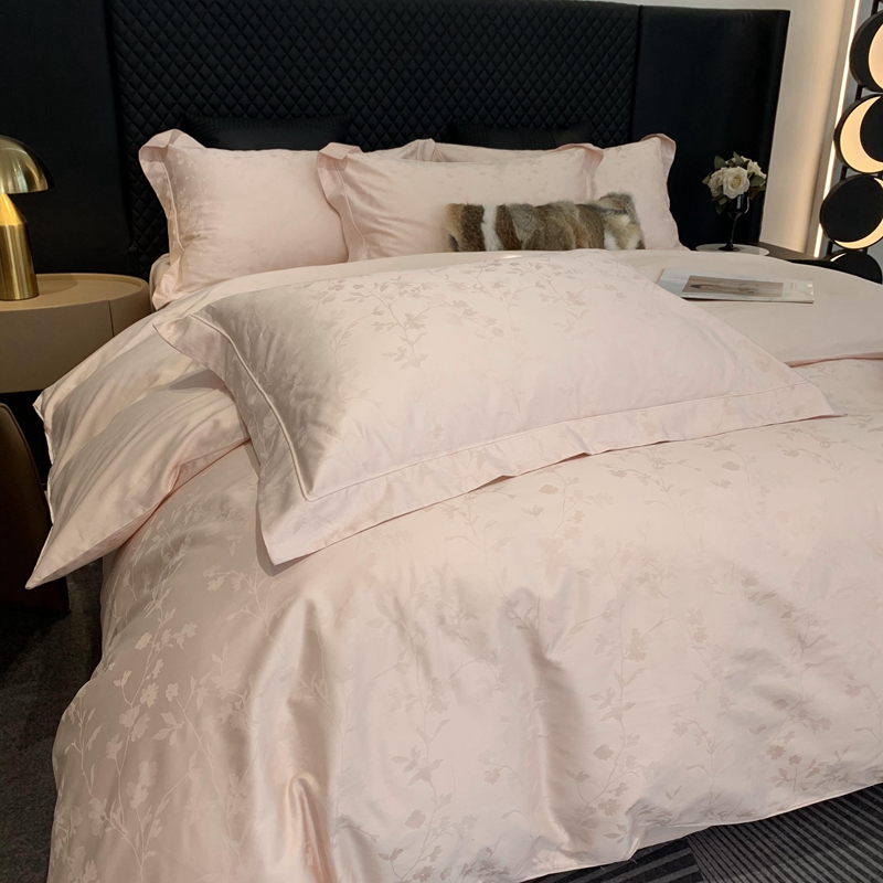 商品名称:莱豫 2025新款100支新疆阿克苏长绒棉提花四件套 缇香粉