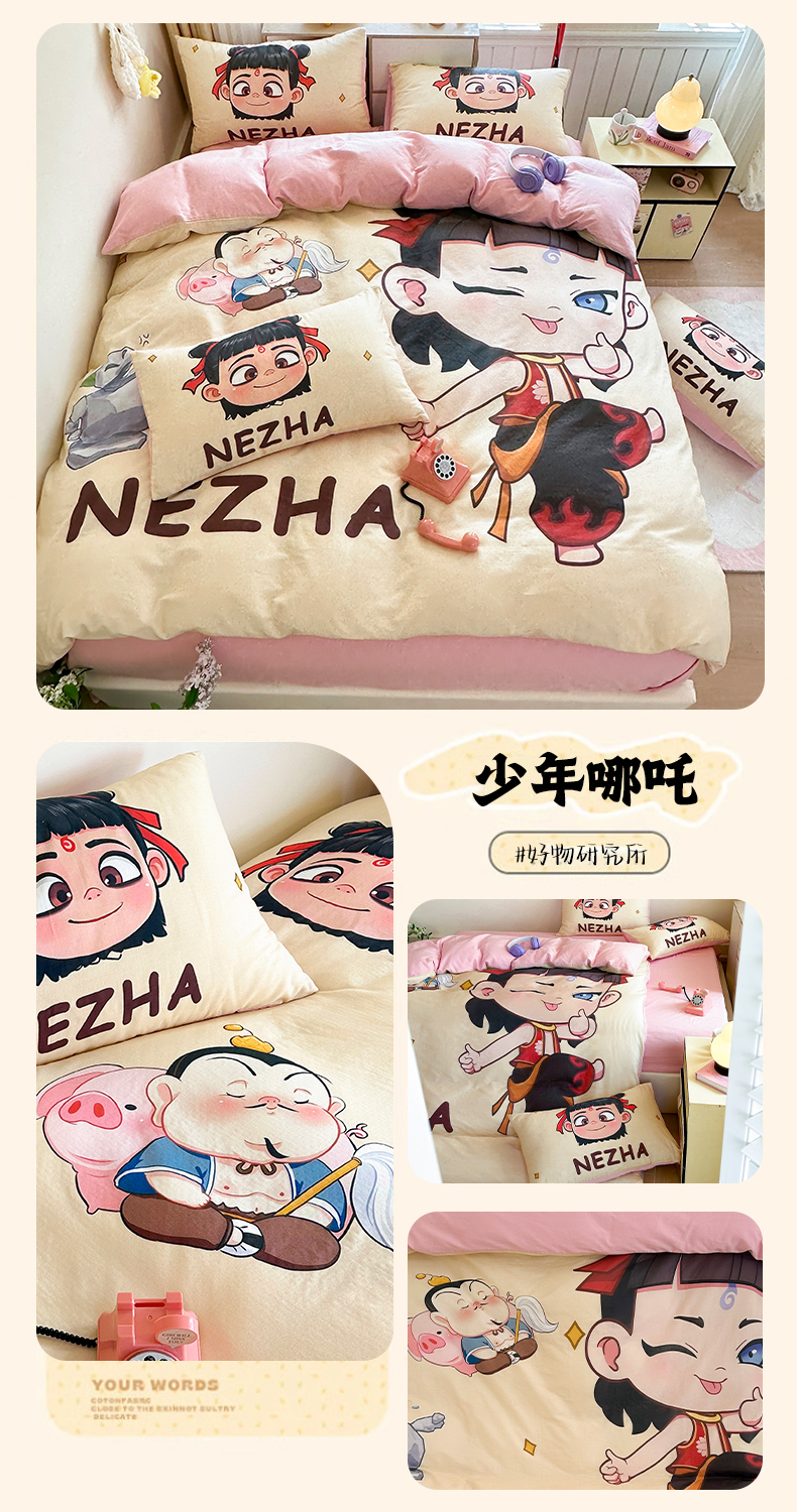 (总)馨语家居 2025新款直播热款高克重保暖卡通牛奶绒印花四件套,幸运草莓,一路生花,针织小熊,彩虹碧琪,彩虹哪吒,草莓哪吒,海洋机器人,郊游哪吒,恐龙球队,魔童哪吒,哪吒敖丙,南通狼,漂流哪吒,少年哪吒,神龙哪吒,腾云哪吒,娃娃机,未来萌宠,小马碧琪,小奶龙,浴火哪吒
