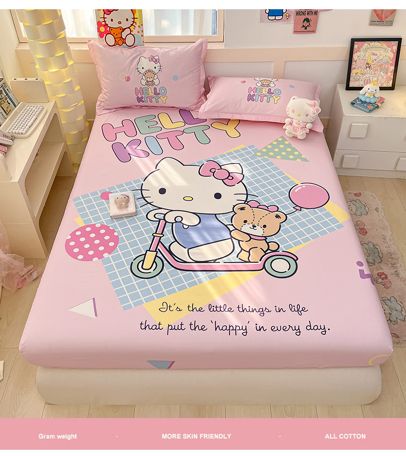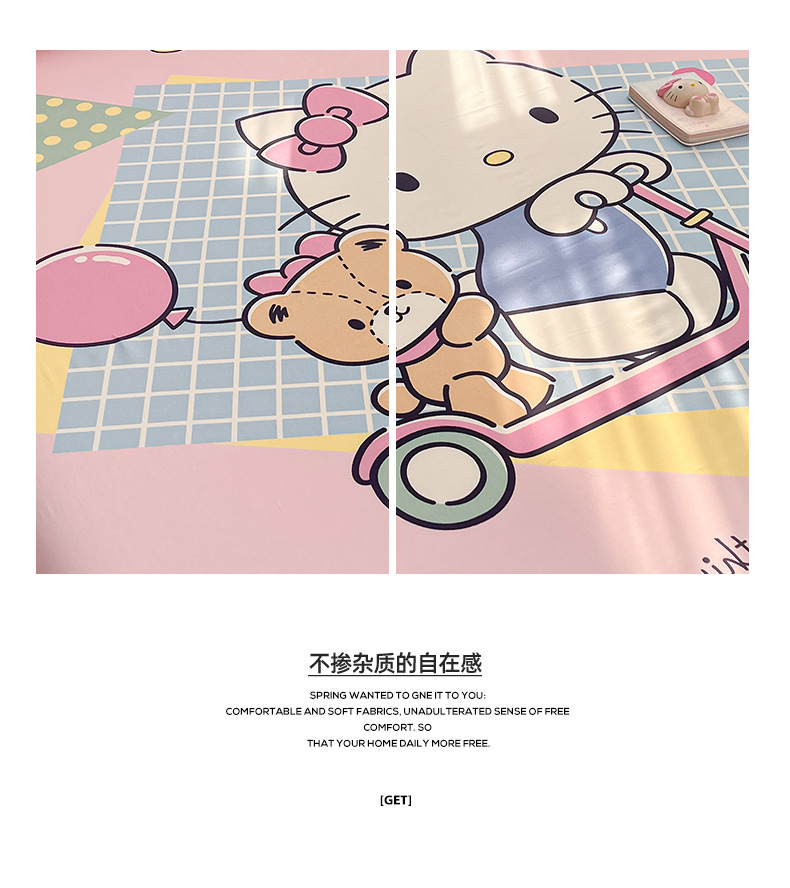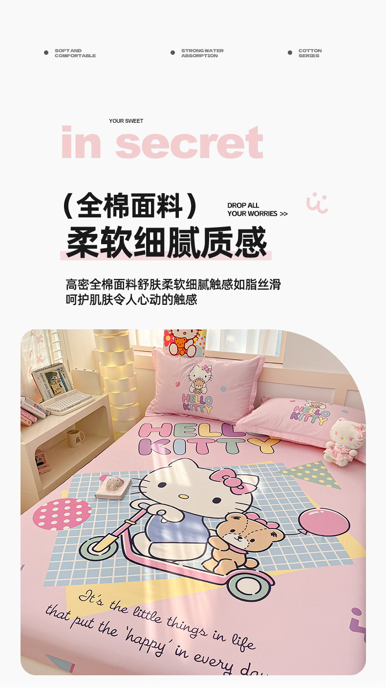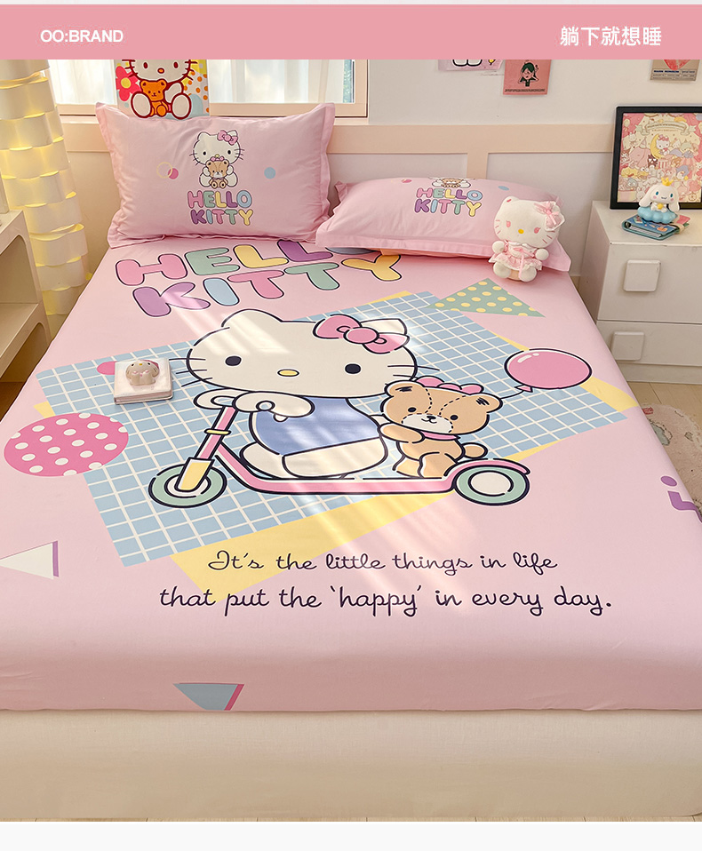 博雅 2025新款三丽鸥全棉大版床笠-第二批 滑板KT猫
