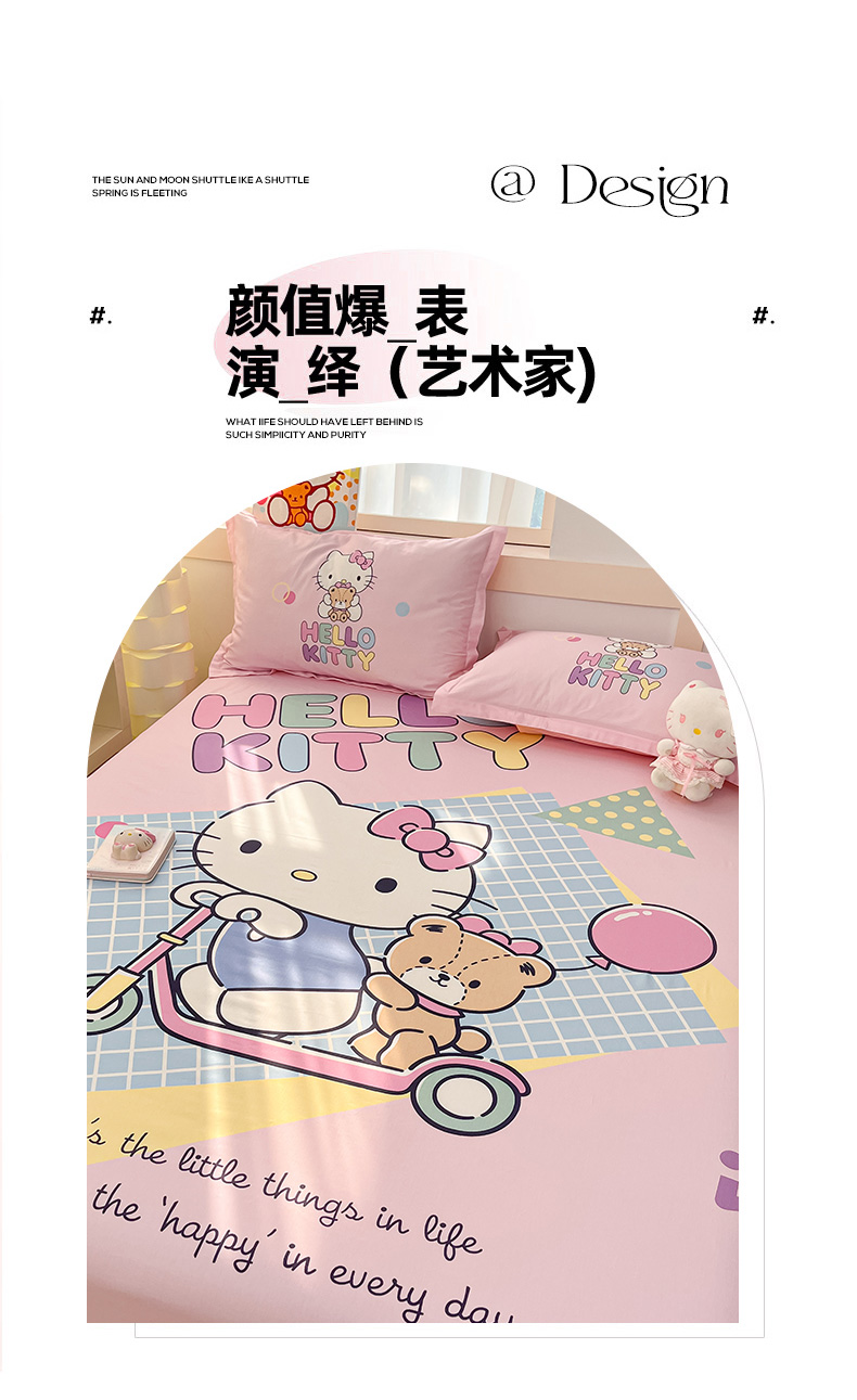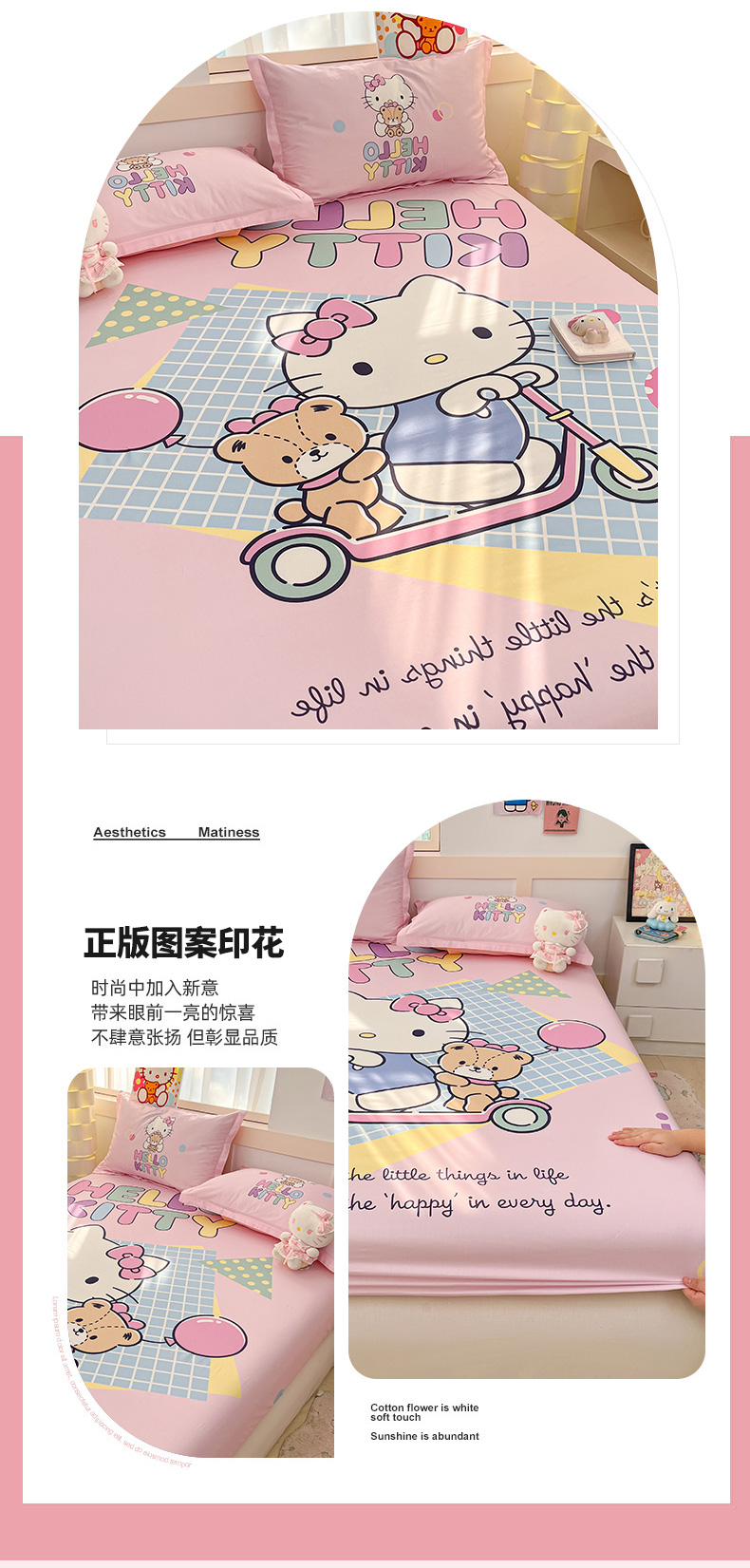 • 91家纺网 家纺一手货源 找家纺 博雅 2025新款三丽鸥全棉大版床笠-第二批 滑板KT猫
