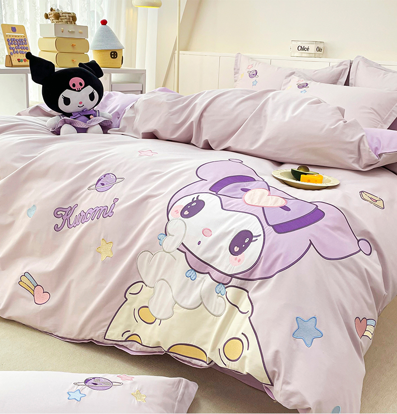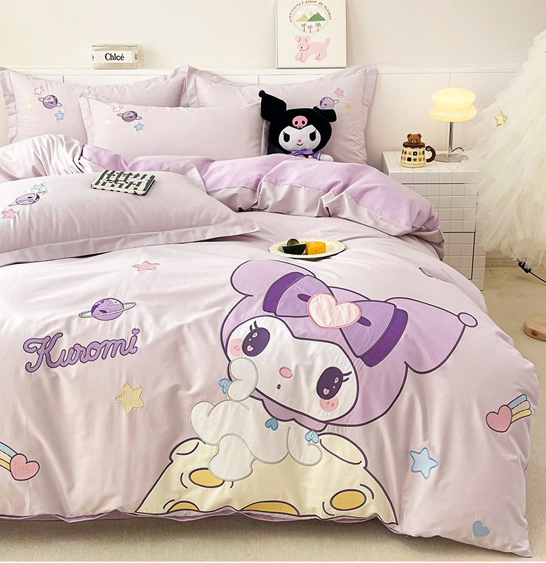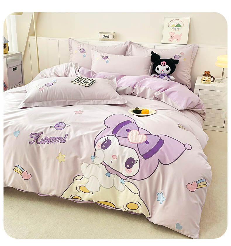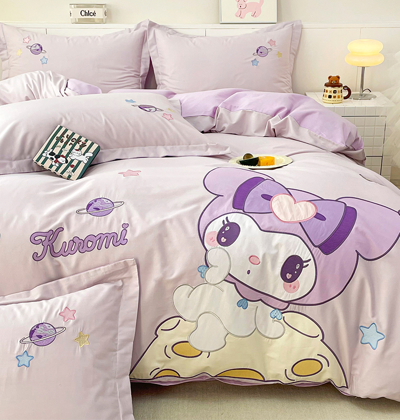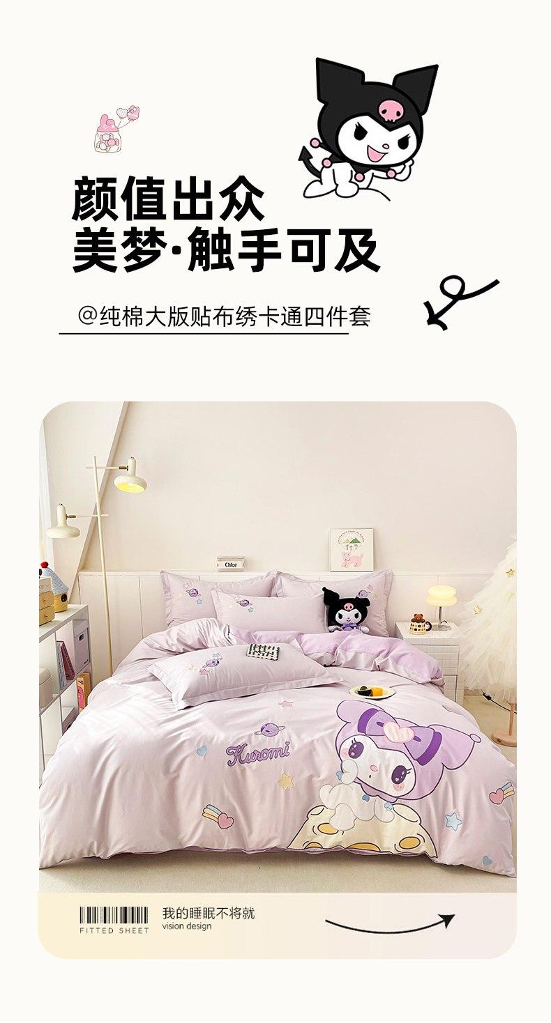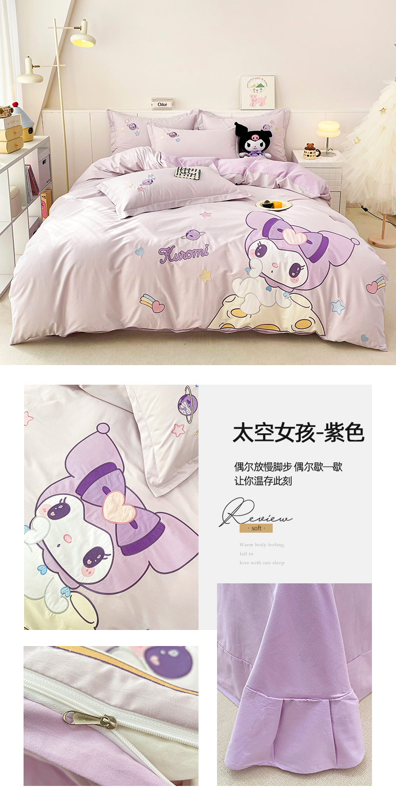 (总)金绣美居 2025新款全棉大版卡通贴布绣春夏新款四件套-太空女孩,太空女孩-紫色,太空女孩-粉色