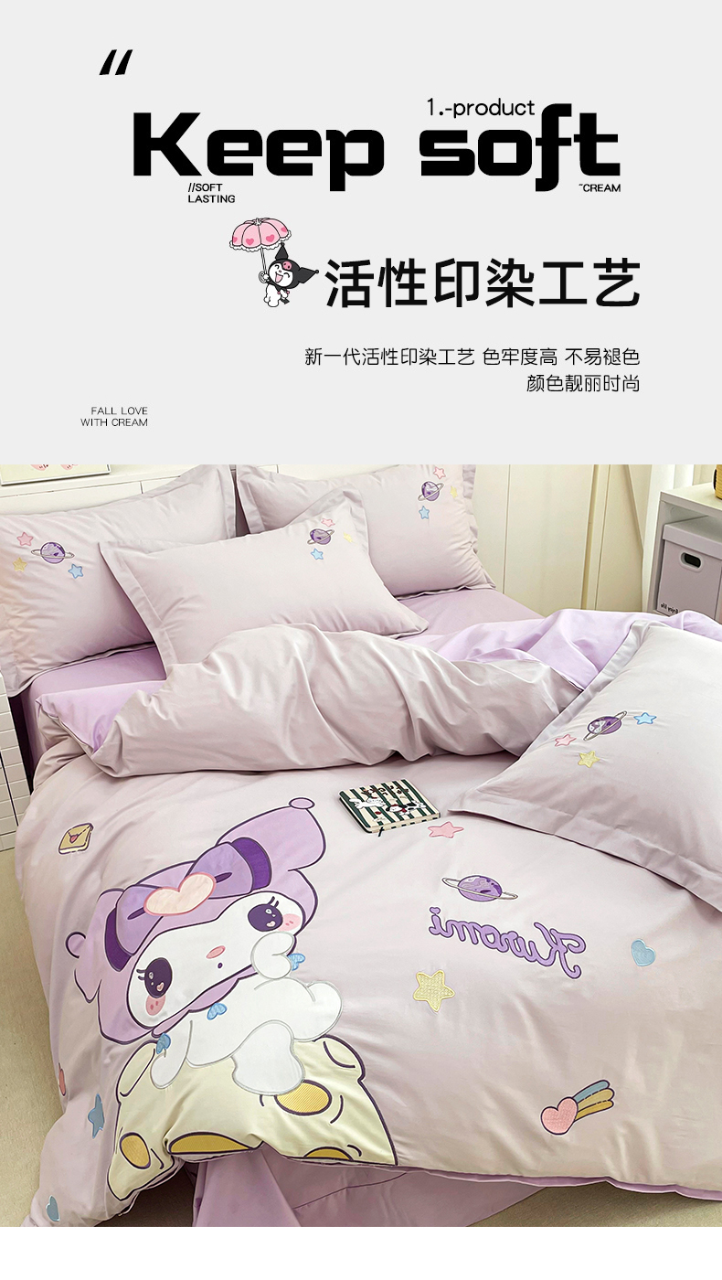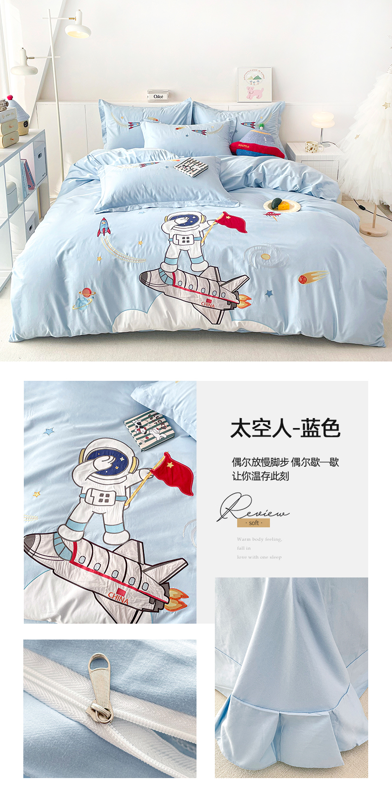 商品名称:金绣美居 2025新款全棉大版卡通贴布绣春夏新款四件套 太空女孩-紫色