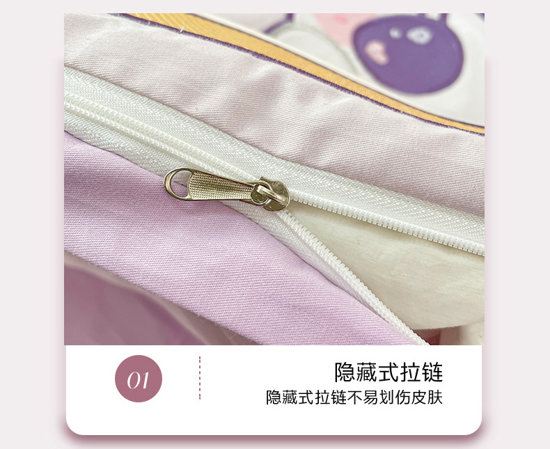 (总)金绣美居 2025春夏新品全棉大版卡通贴布绣四件套--兔兔乐园,兔兔乐园-紫色