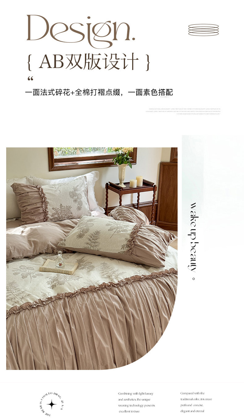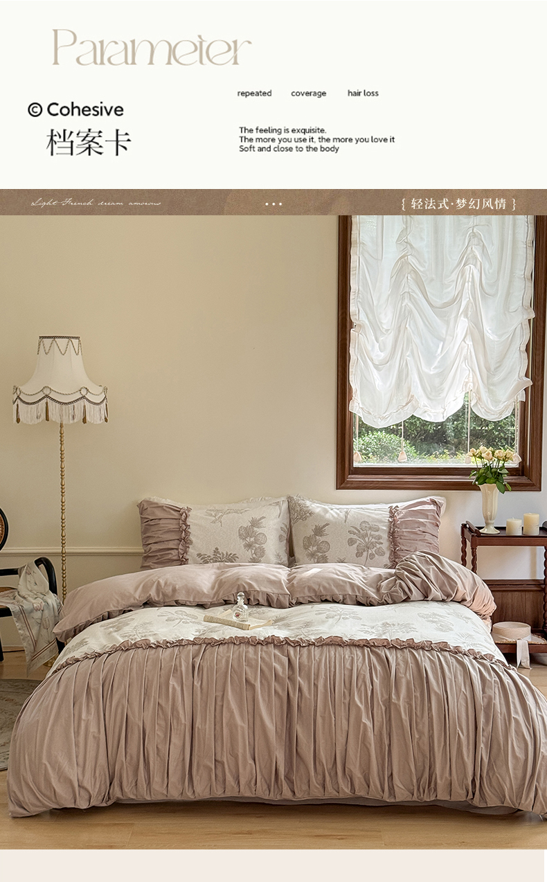 商品名称:(总)TT.one 塔塔家居 2025新款全棉法式打褶印花四件套-花园派对