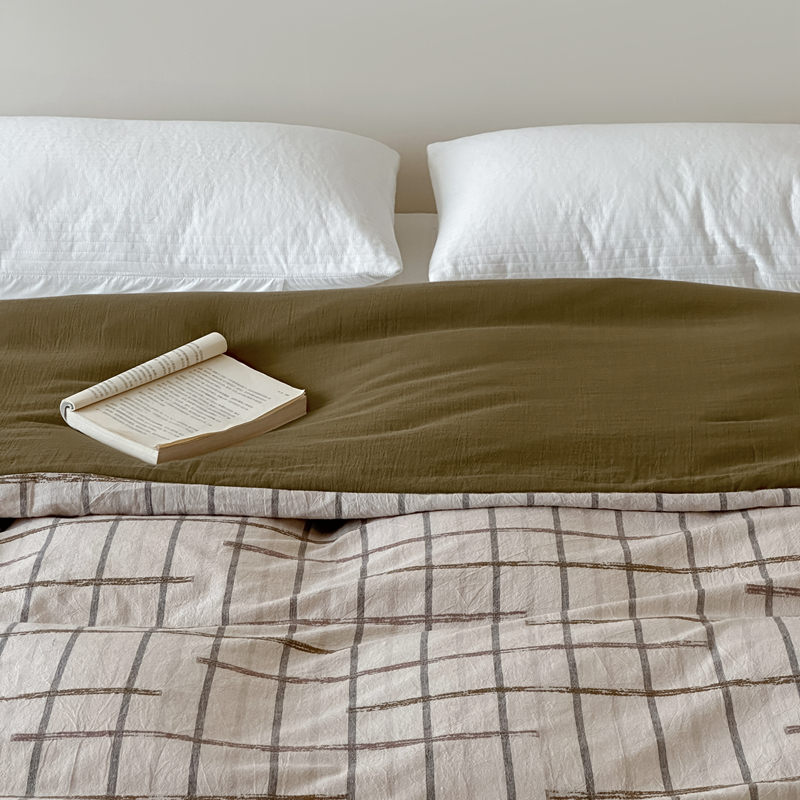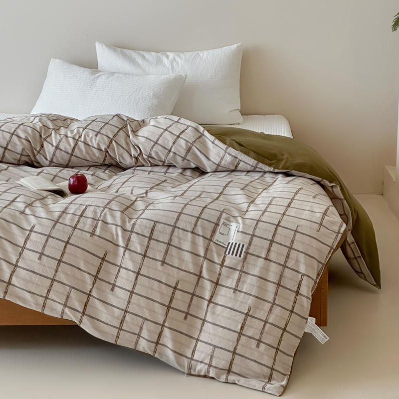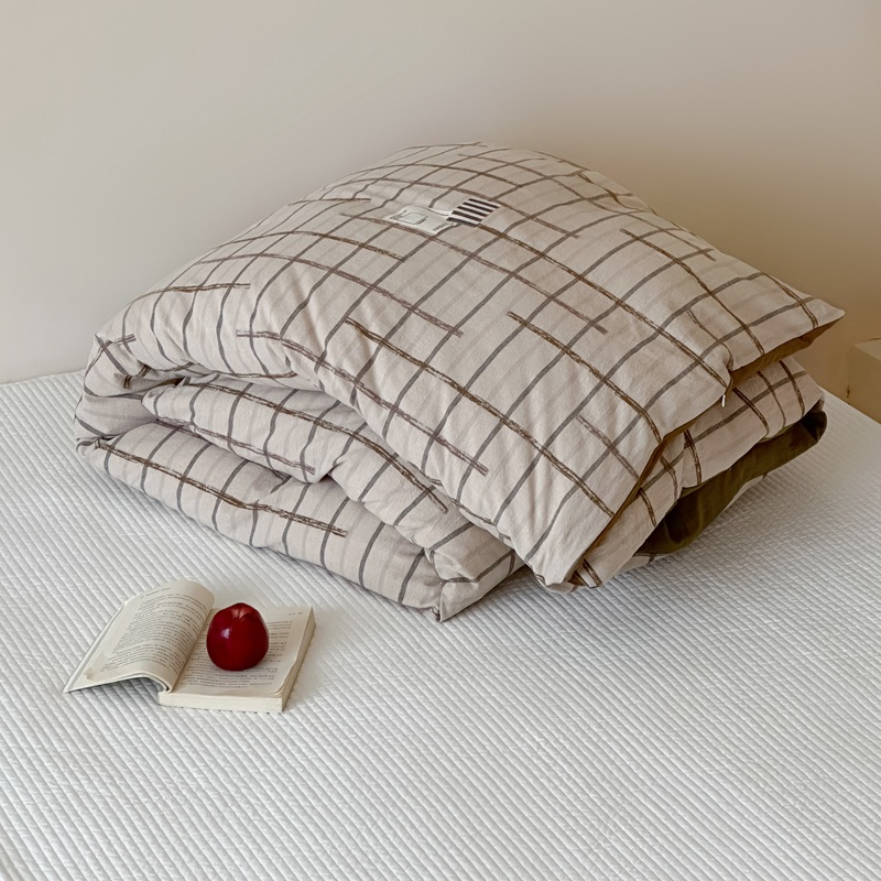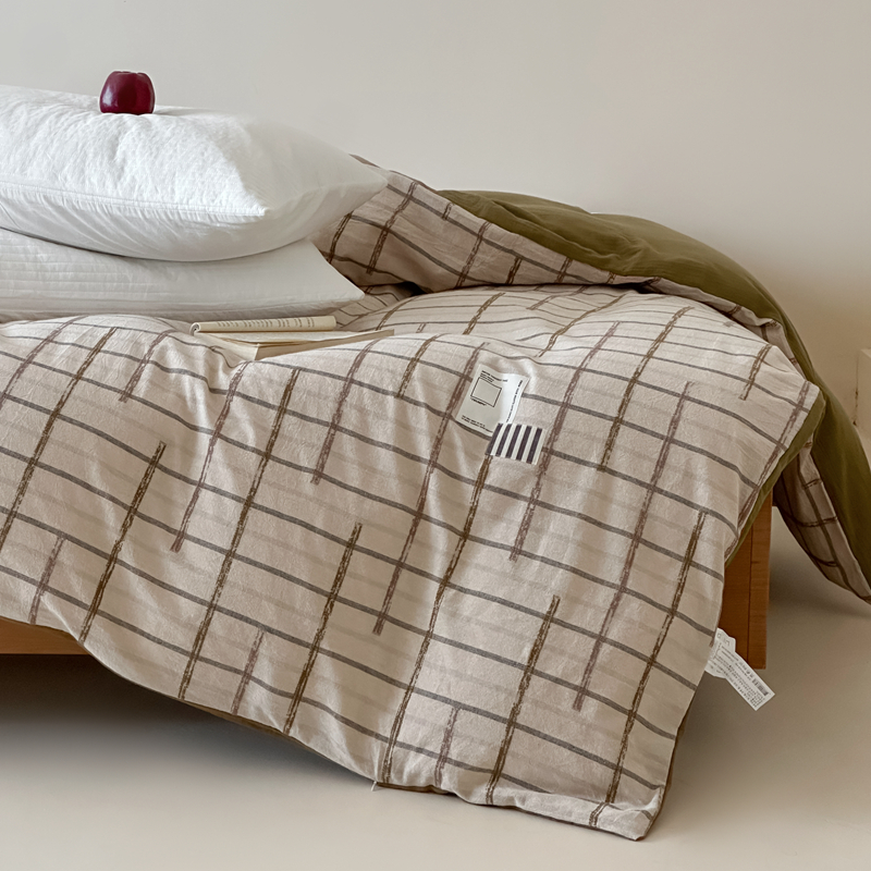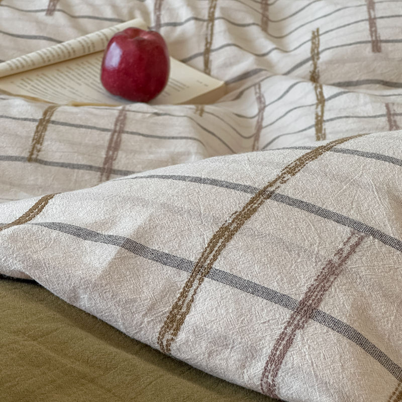 (总)月夏 2025新款全棉双层纱被套全棉被套单被套,莫克-绿,莫克-橘,莫克-灰,莫克-咖,吉尔伯特-浅咖,吉尔伯特-米白,格韵风华-橘,格韵风华-灰