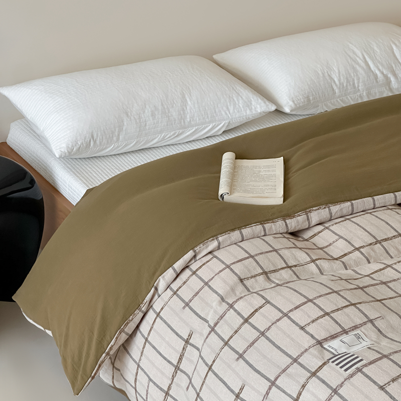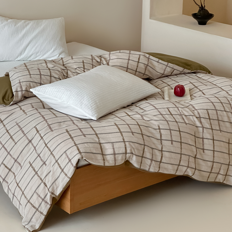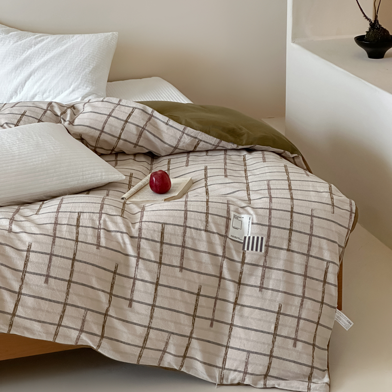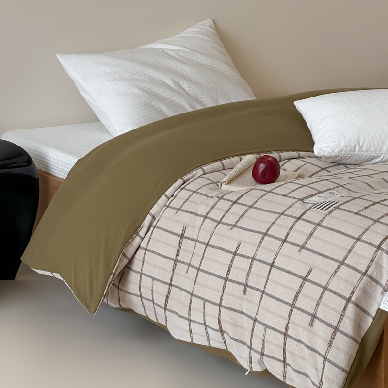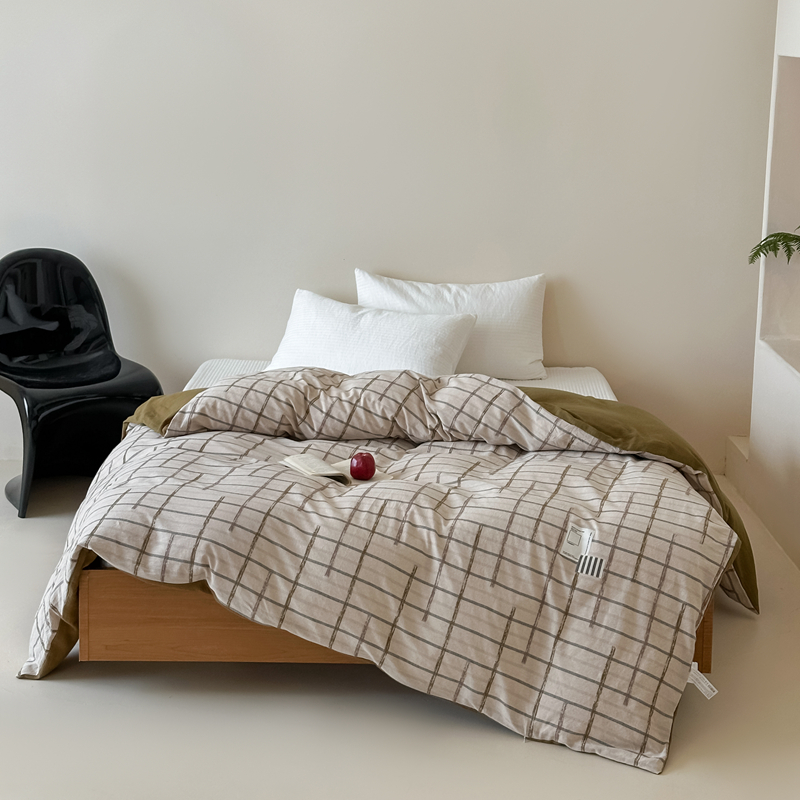 (总)月夏 2025新款全棉双层纱被套全棉被套单被套,莫克-绿,莫克-橘,莫克-灰,莫克-咖,吉尔伯特-浅咖,吉尔伯特-米白,格韵风华-橘,格韵风华-灰