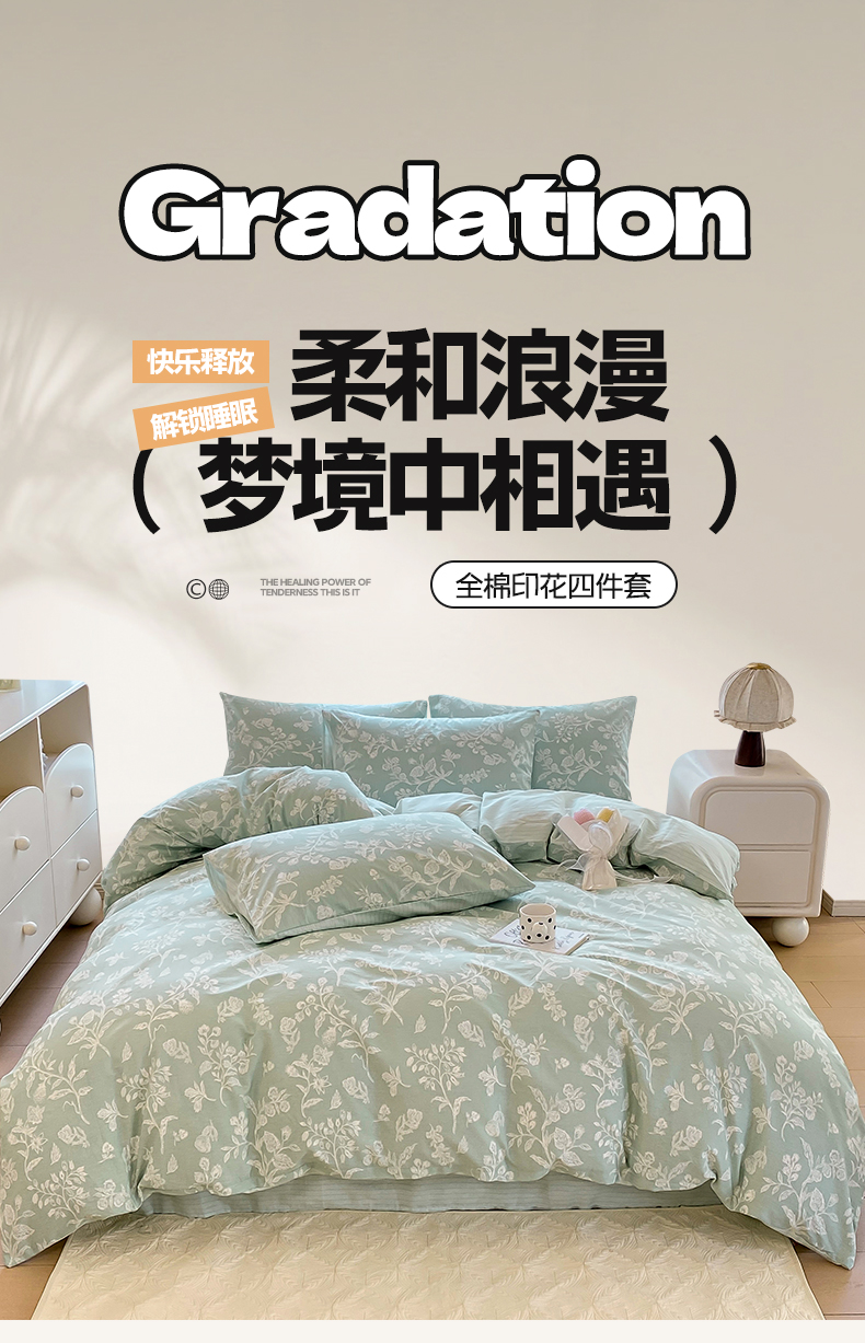 宜家坊 2025早春新品全棉纯棉喷气13070小清新印花纯棉四件套-风格二 清甜