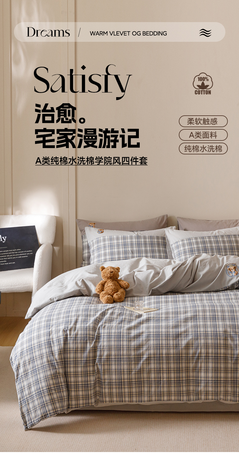 商品名称:(总)2025新款纯棉水洗棉学院风四件套