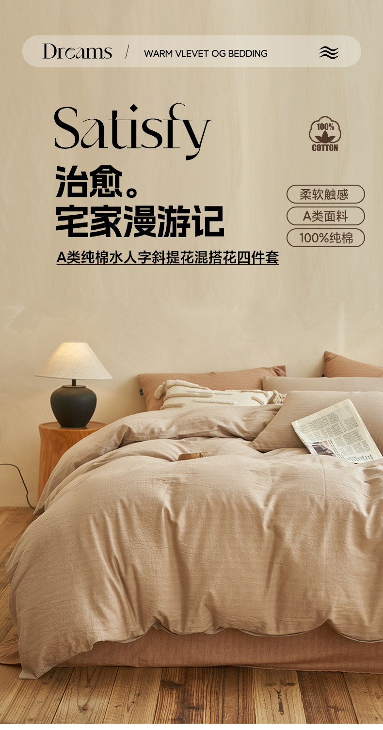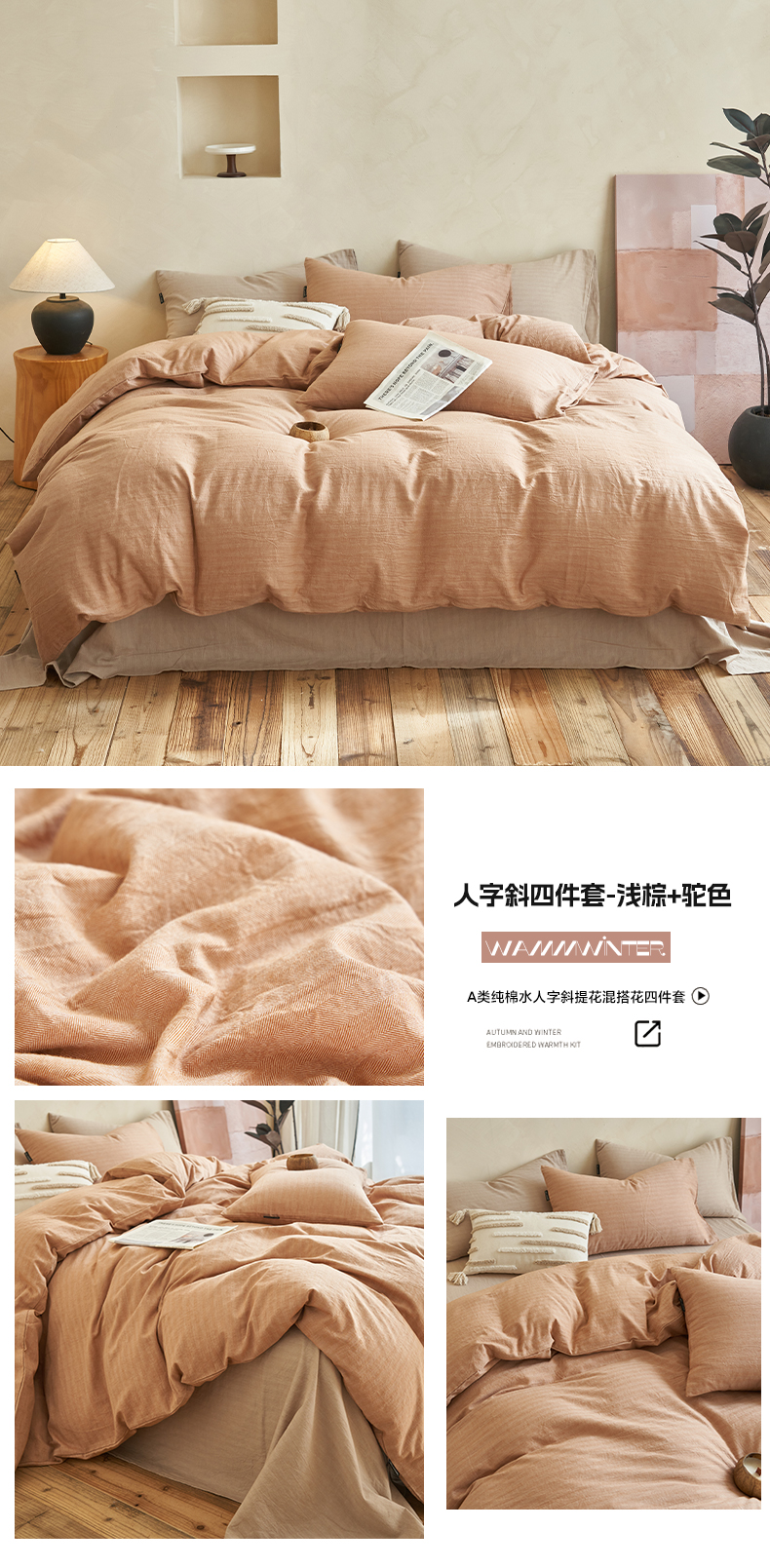 当前位置: 91家纺网 > 商品网购 > 床品套件 > 四件套 > 水洗棉四件套 > 2025新款色织水洗棉人字斜提花混搭四件套 人字斜四件套-奶白+驼色