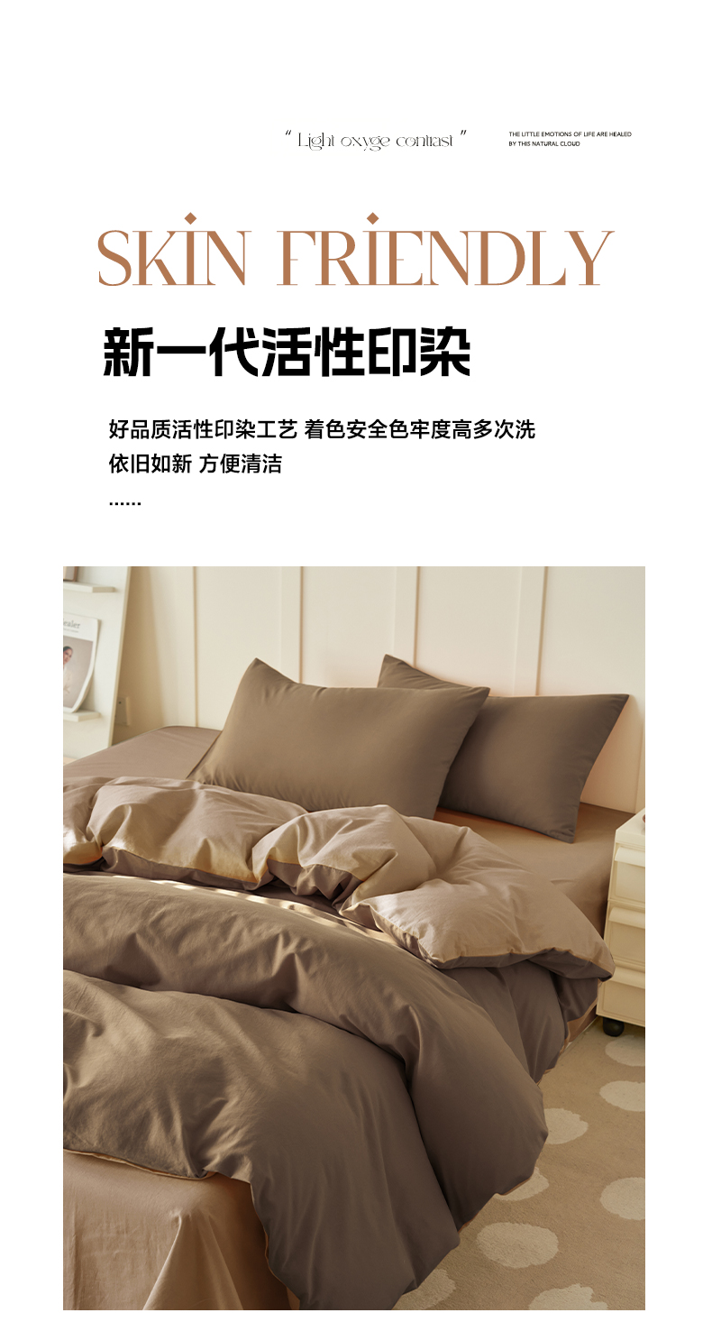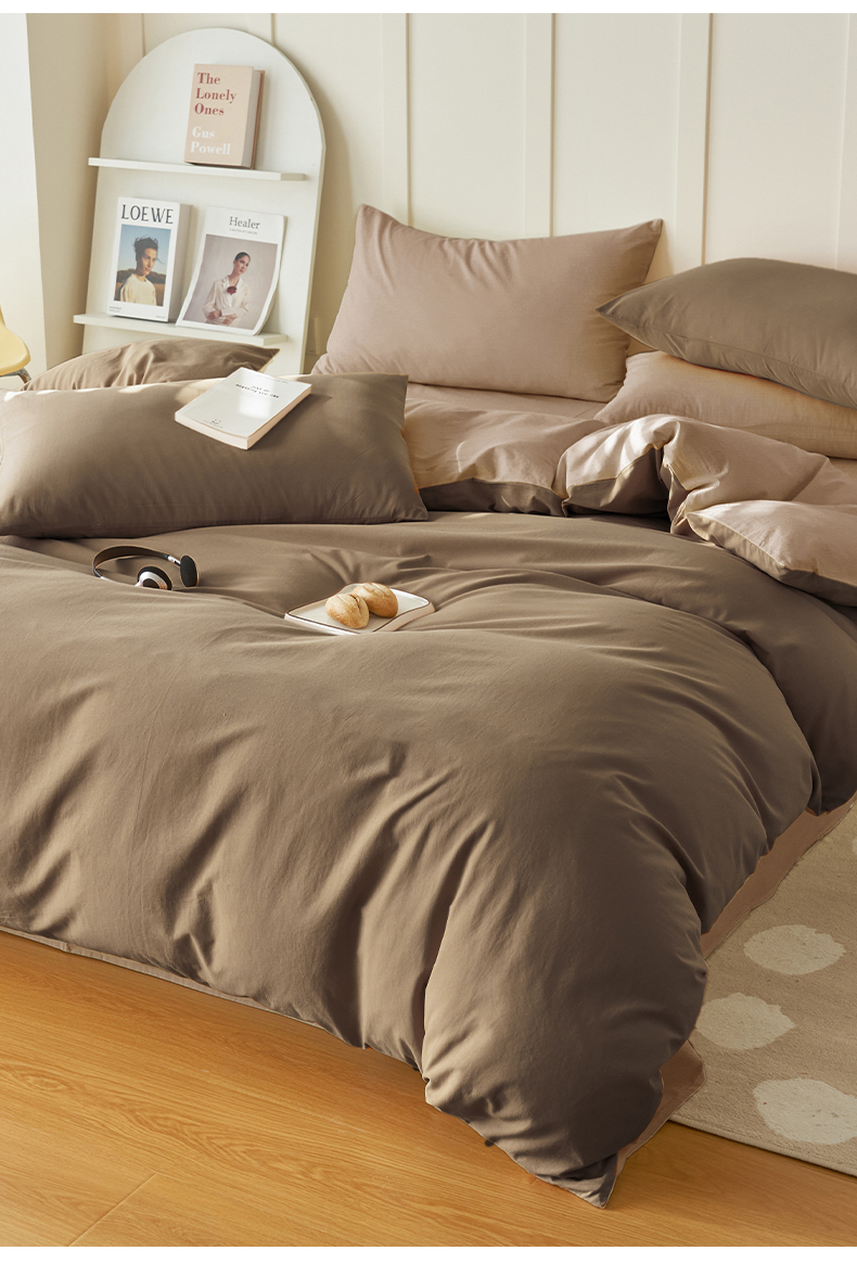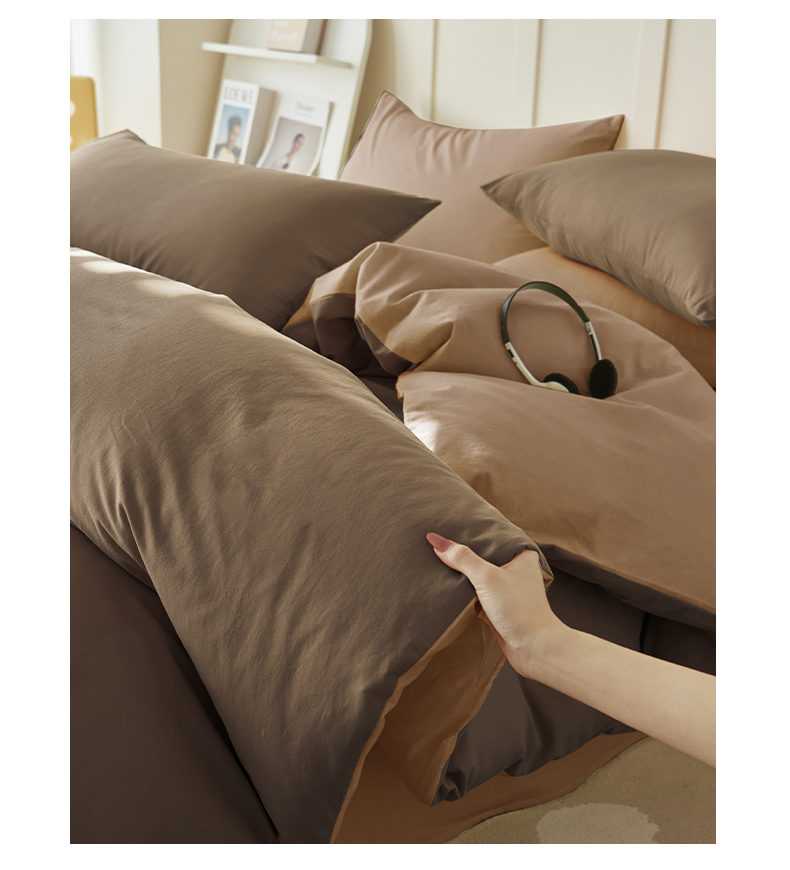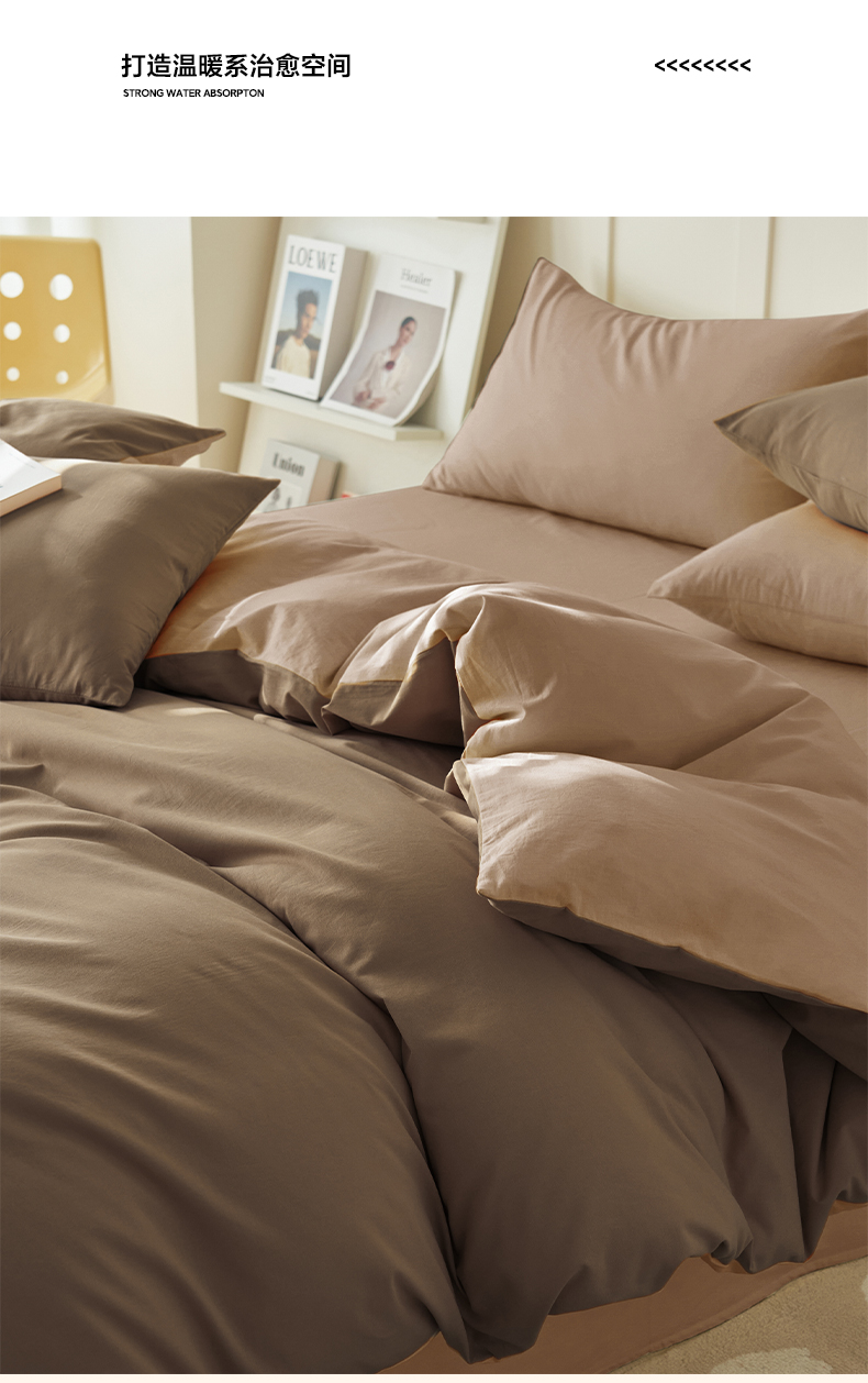 2025新款全棉13372水洗棉双拼四件套(自然光) 暖木棕+拾柴