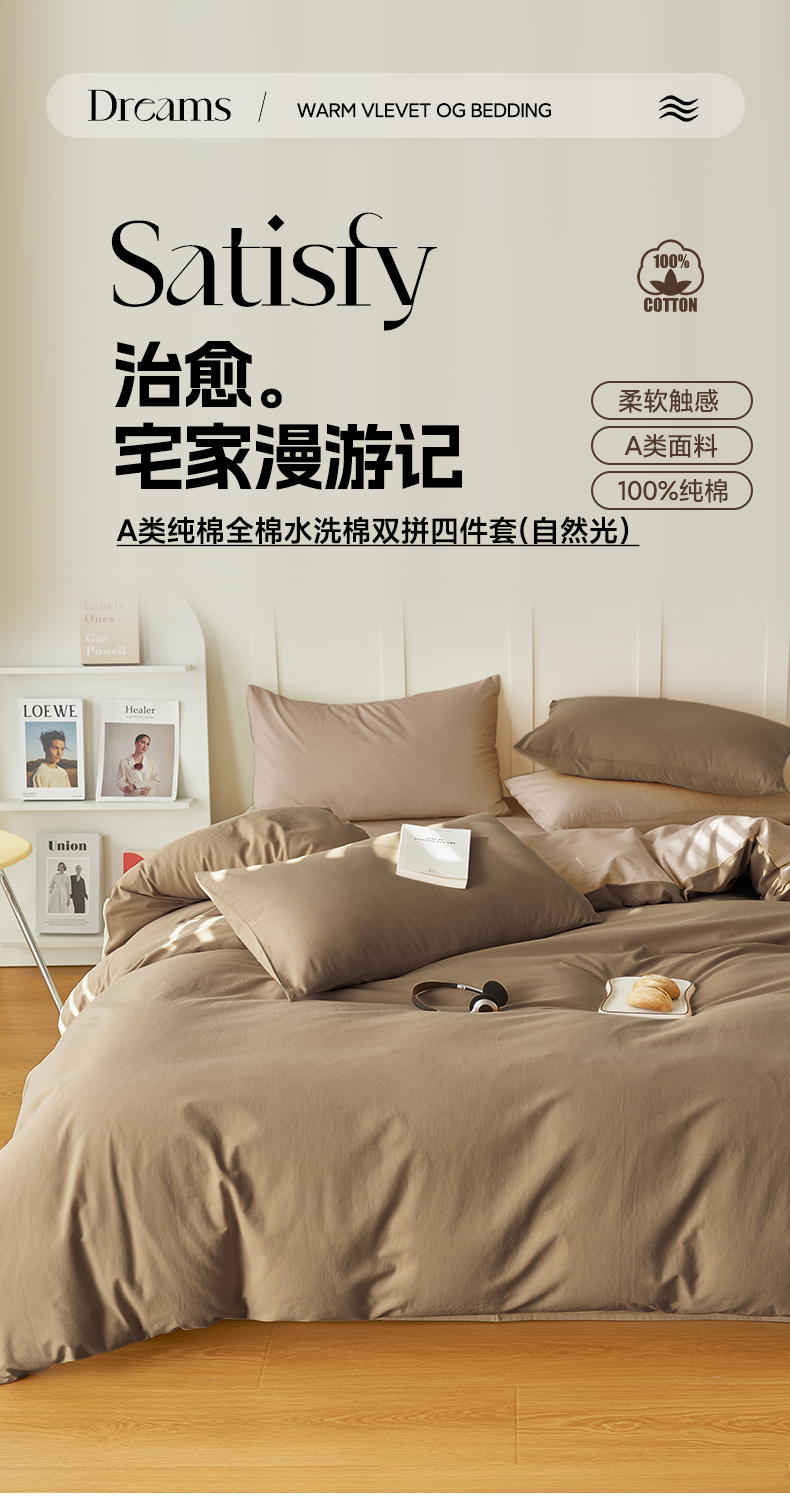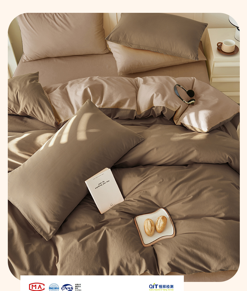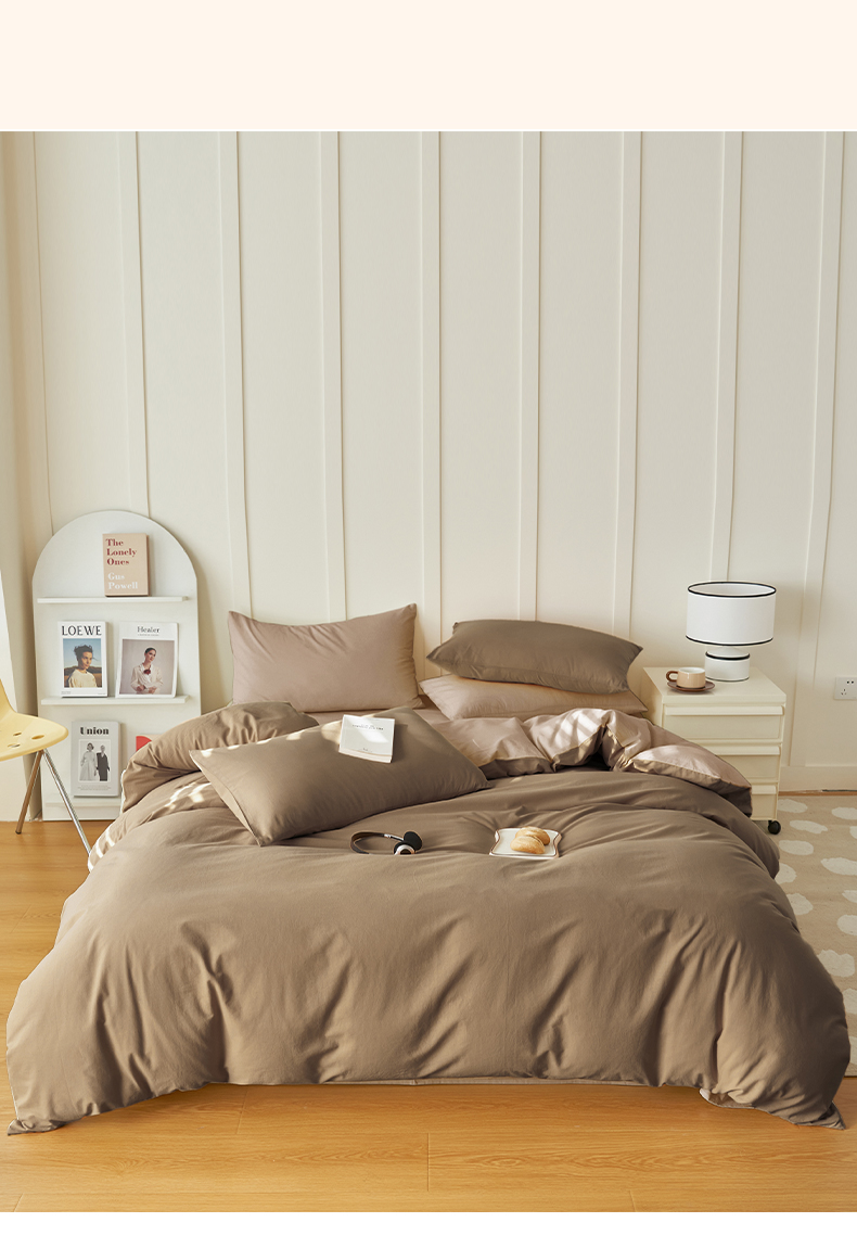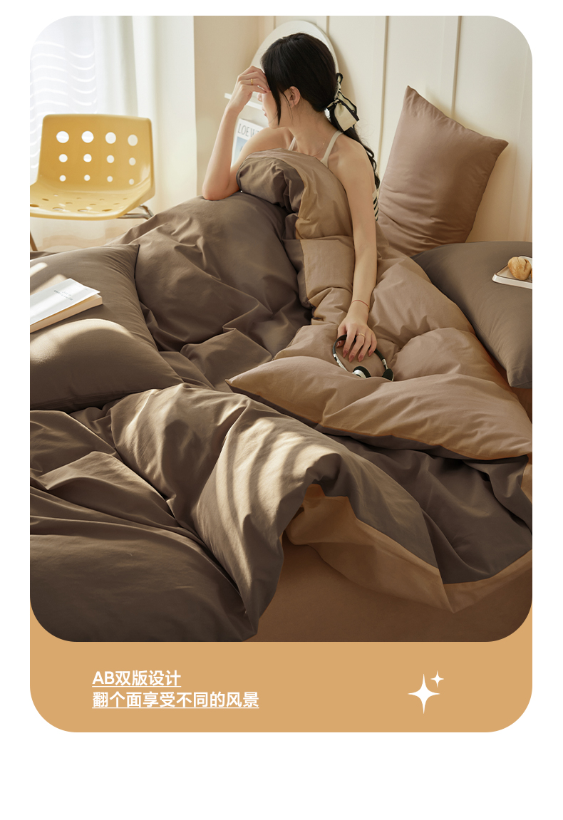 商品名称:2025新款全棉13372水洗棉双拼四件套(自然光) 暖木棕+拾柴