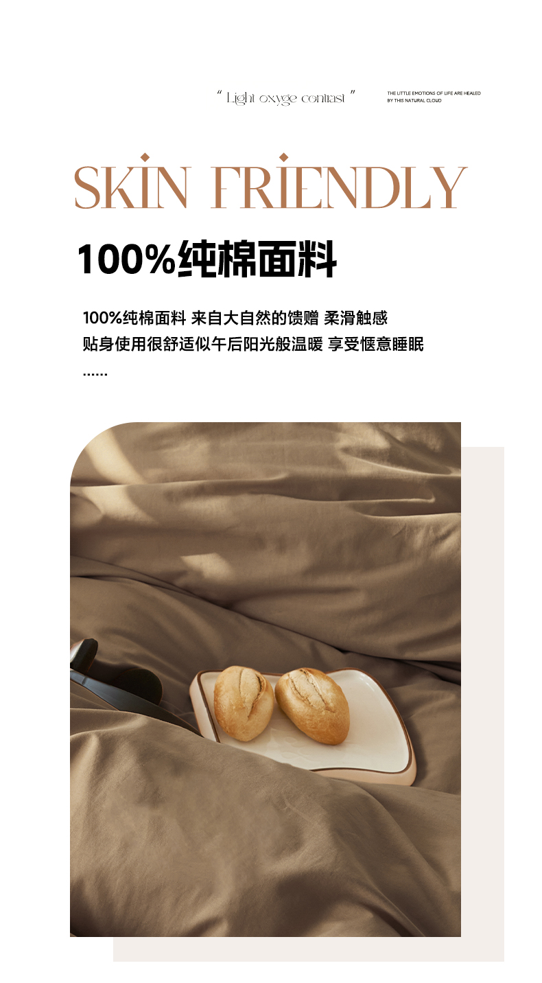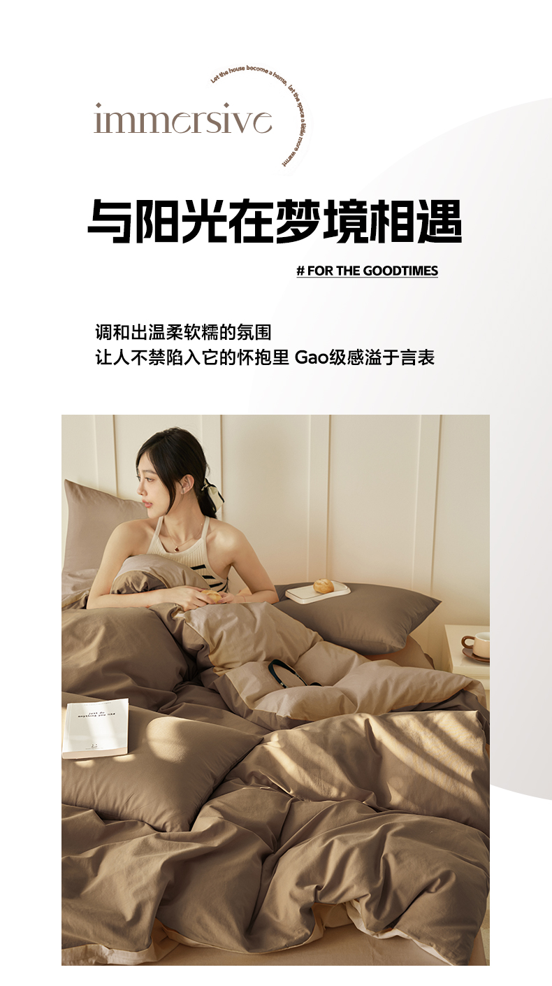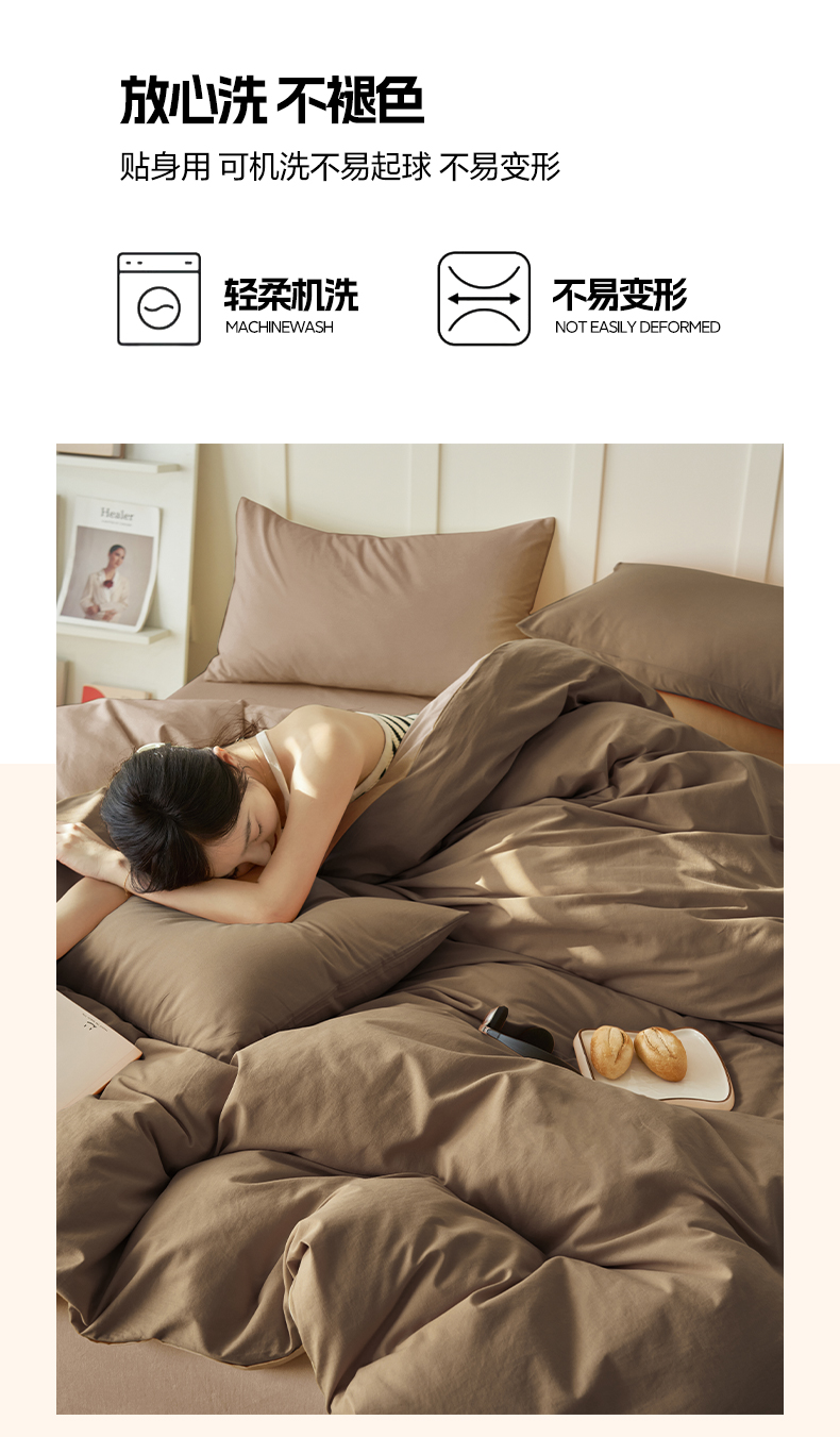 商品名称:2025新款全棉13372水洗棉双拼四件套(自然光) 暖木棕+拾柴