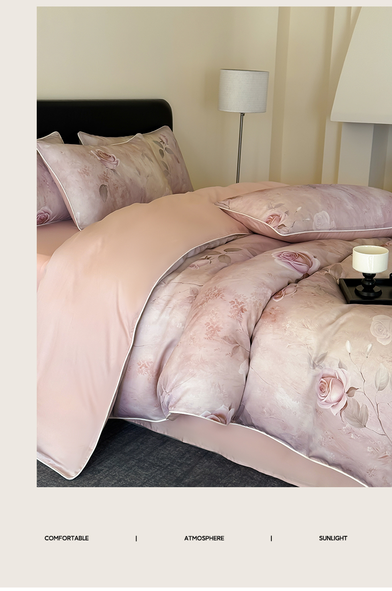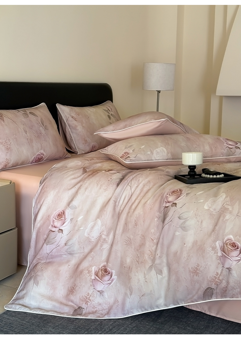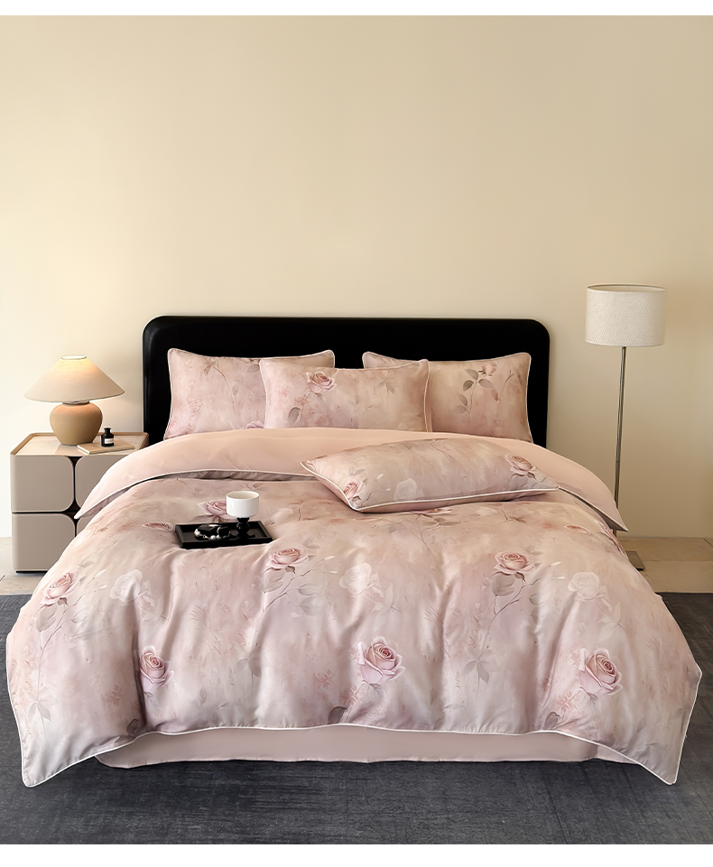 当前位置: 91家纺网 > 商品网购 > 床品套件 > 四件套 > 其它四件套 > 莱登卡奴 2025新款A类50支莱赛尔天丝数码印花麻绳款四件套 玫瑰情缘