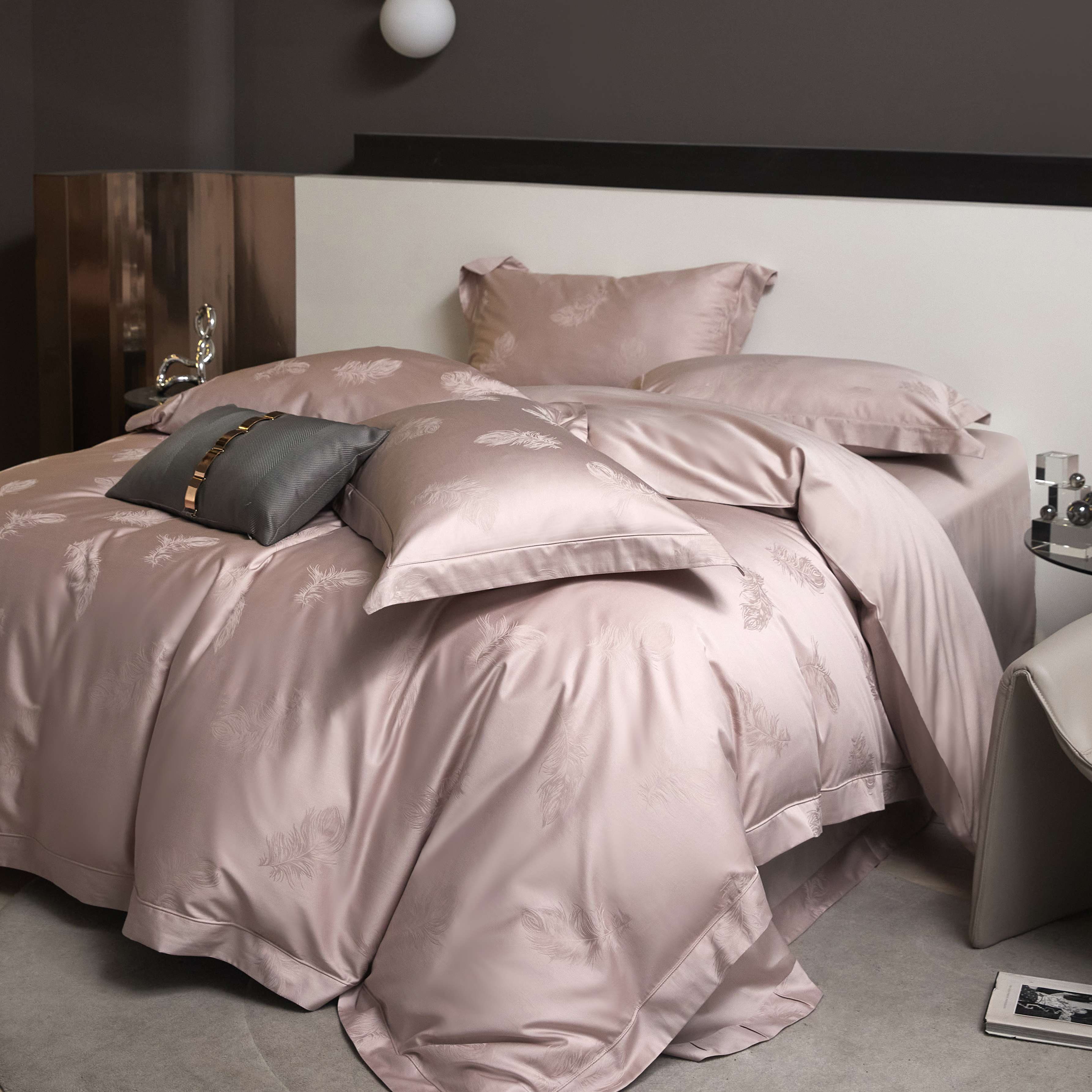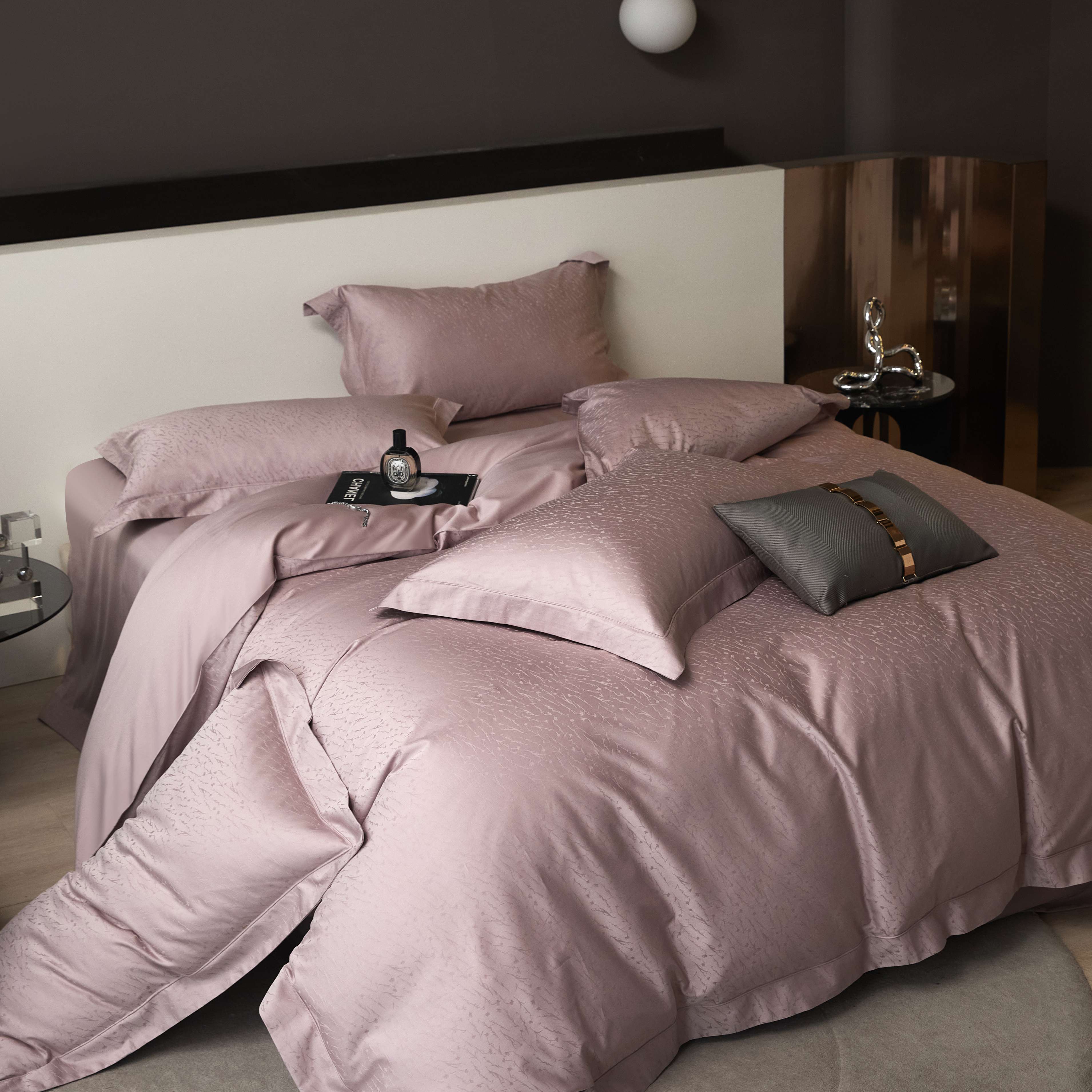 (总)榻尚家居 2023新款纯棉贡缎提花四件套(会员-10),缤兰,烟粉