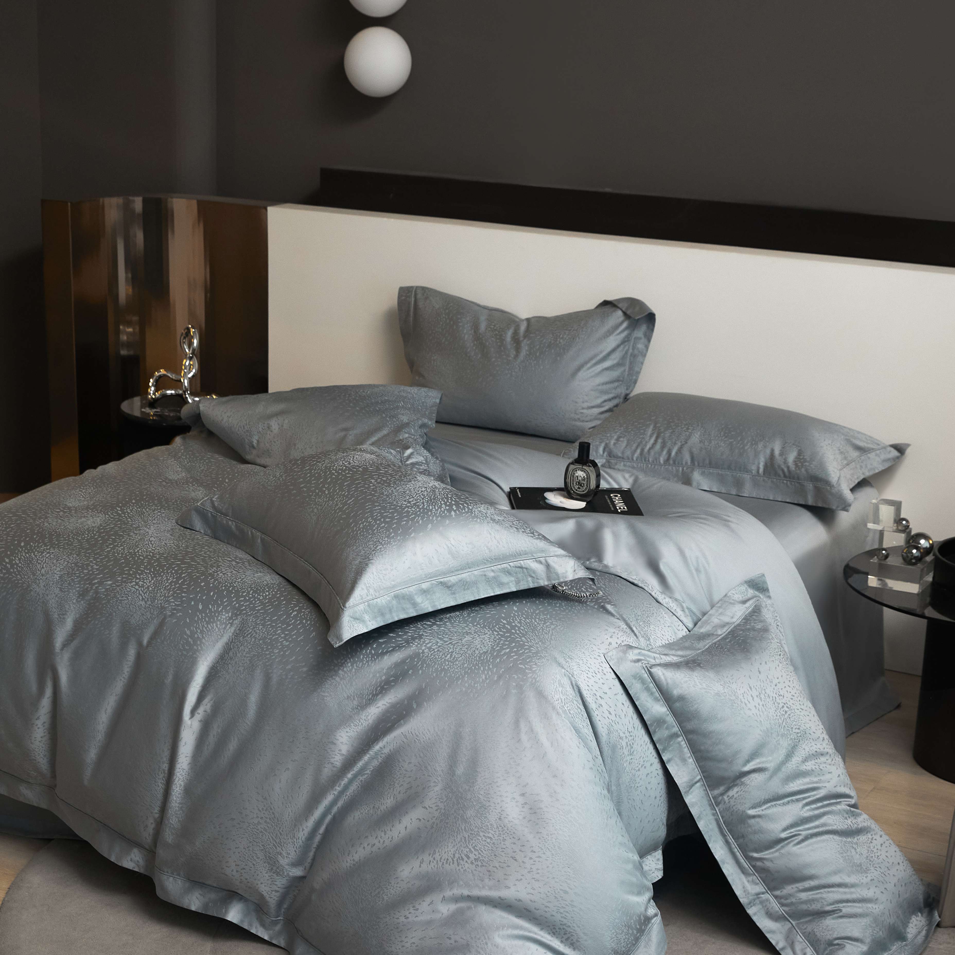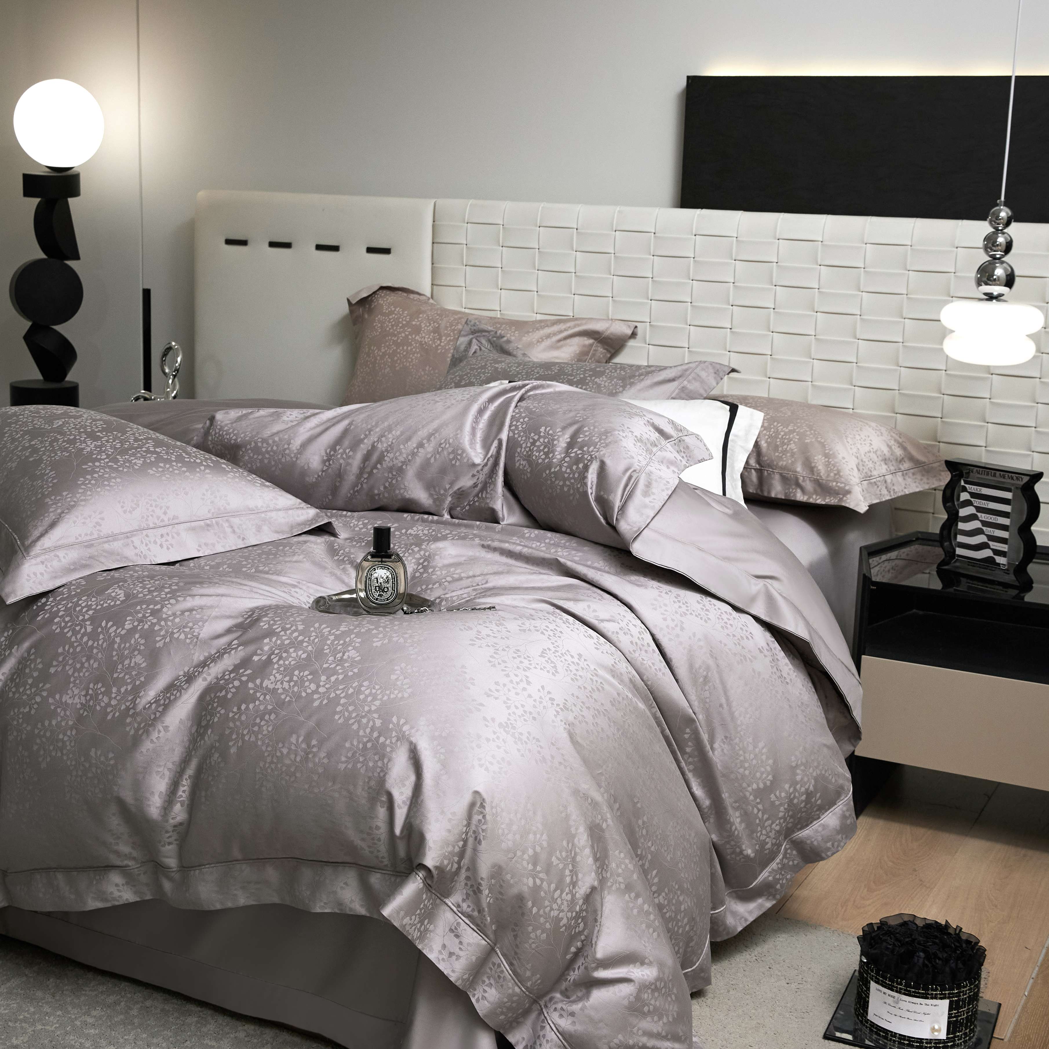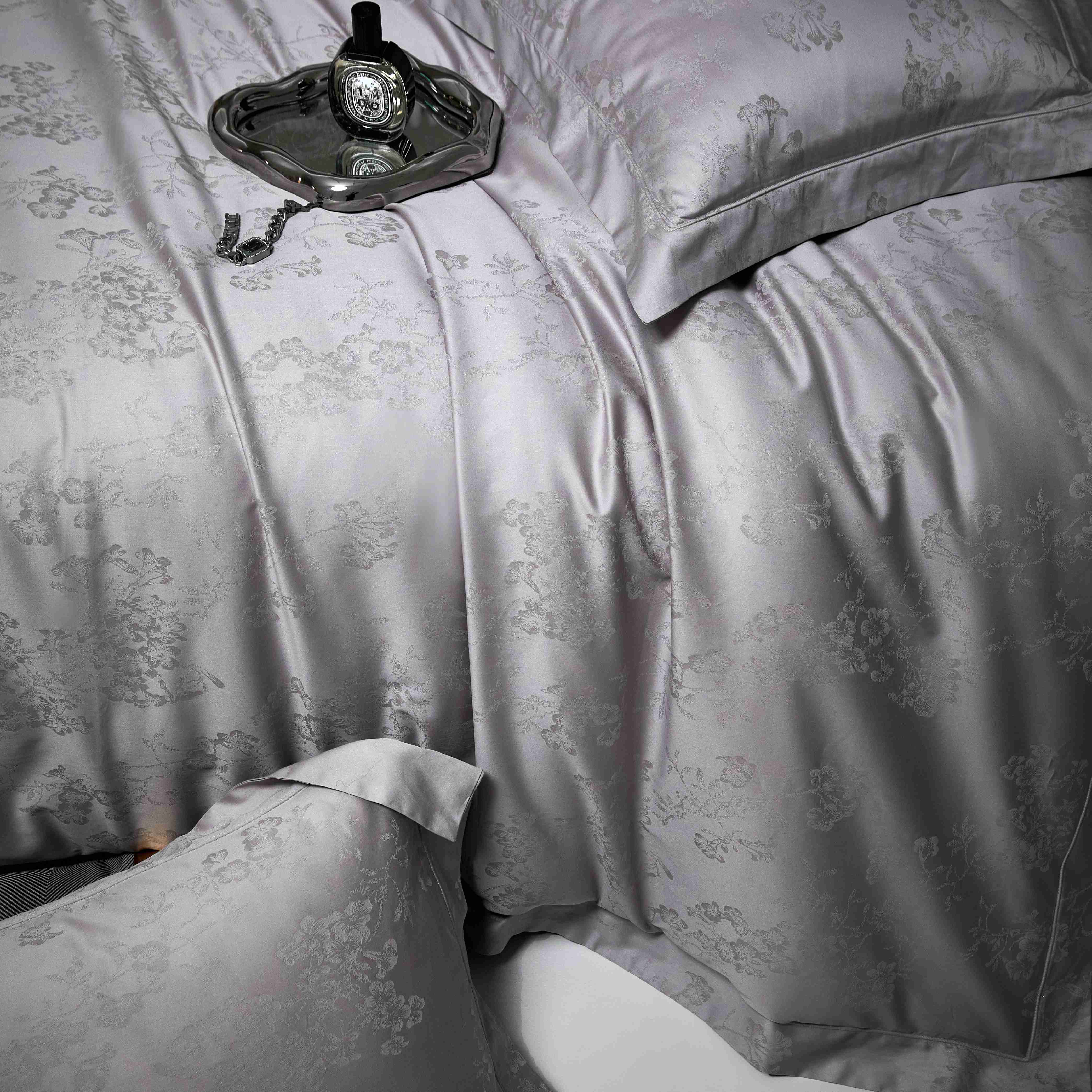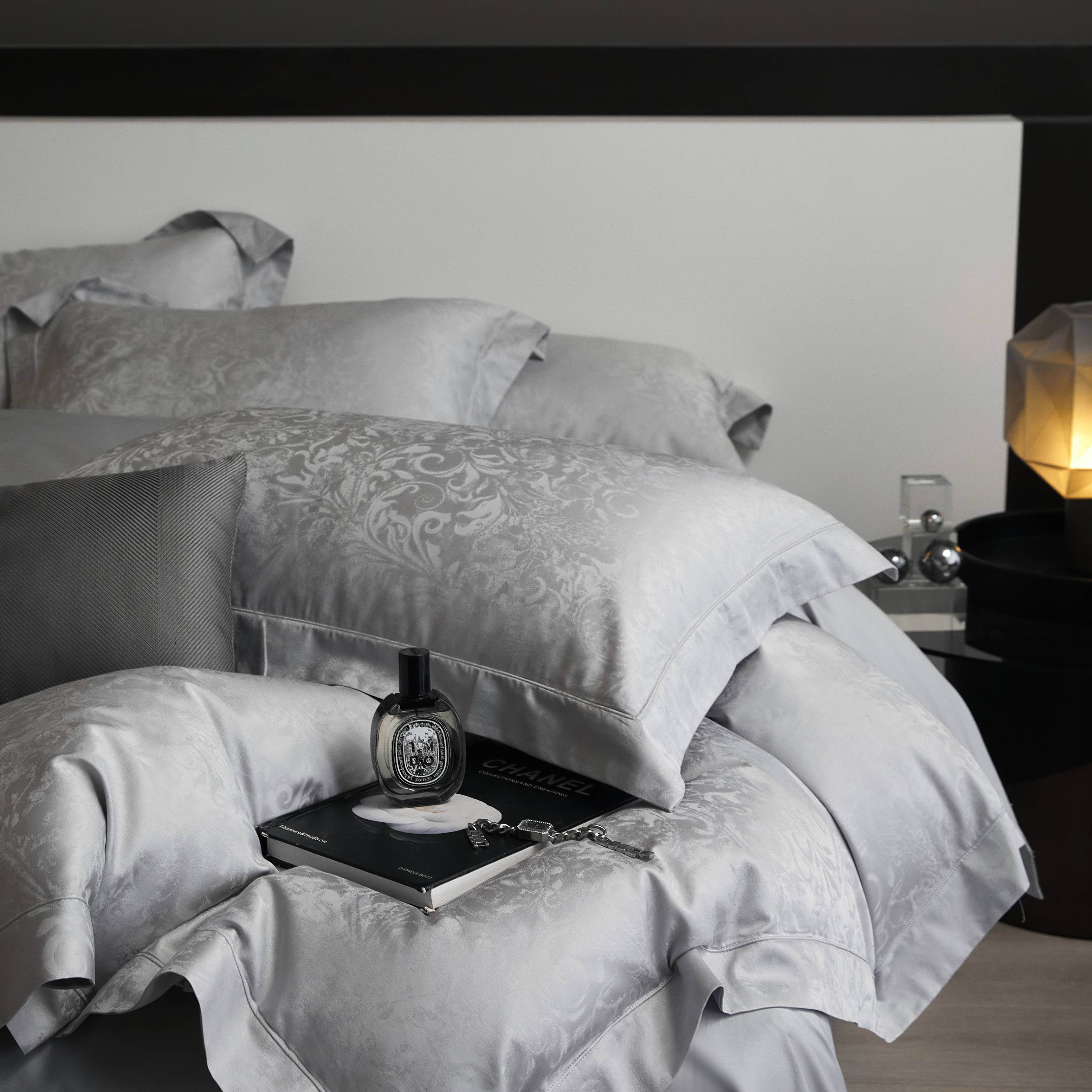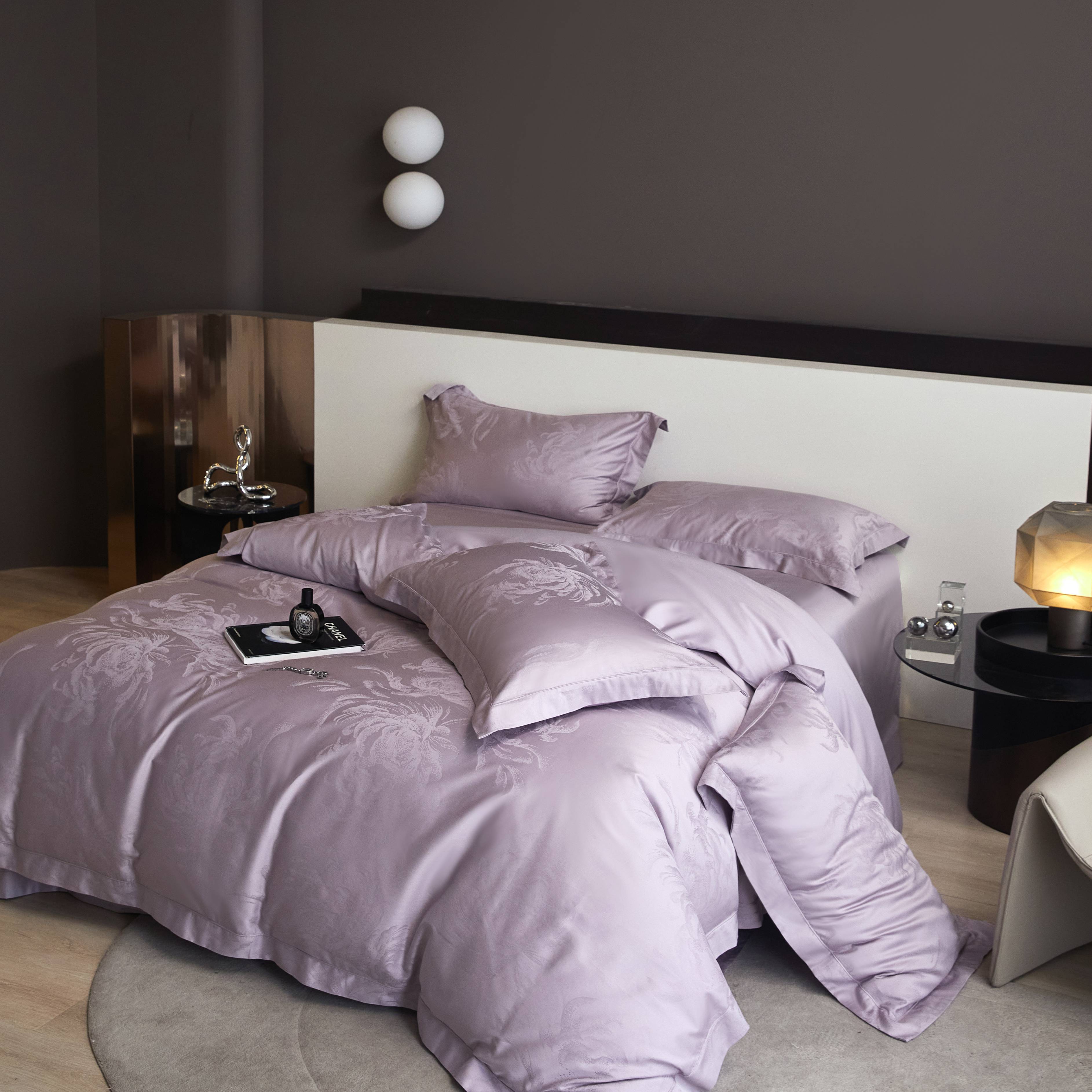 总榻尚家居 2023新款格瑞斯系列100贡缎长绒棉四件套工艺款四件套,格瑞斯紫,格瑞斯白,格瑞斯灰,格瑞斯蓝
