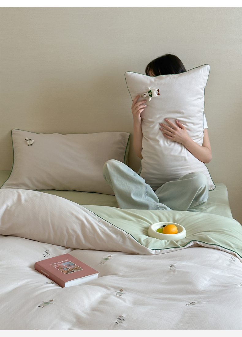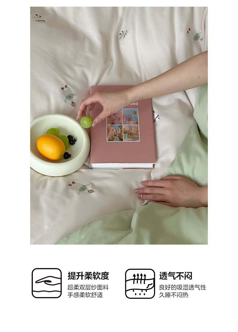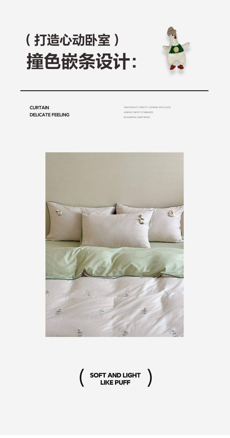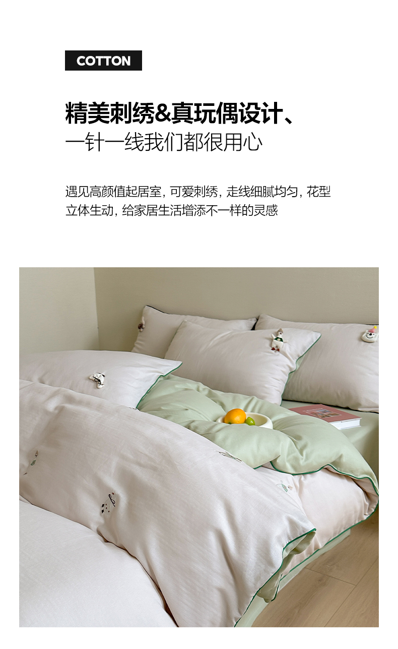当前位置: 91家纺网 > 商品网购 > 床品套件 > 四件套 > 其它四件套 > 卡巴伦家纺 2025双层纱-A类玩偶刺绣嵌条款四件套 绿意绣梦