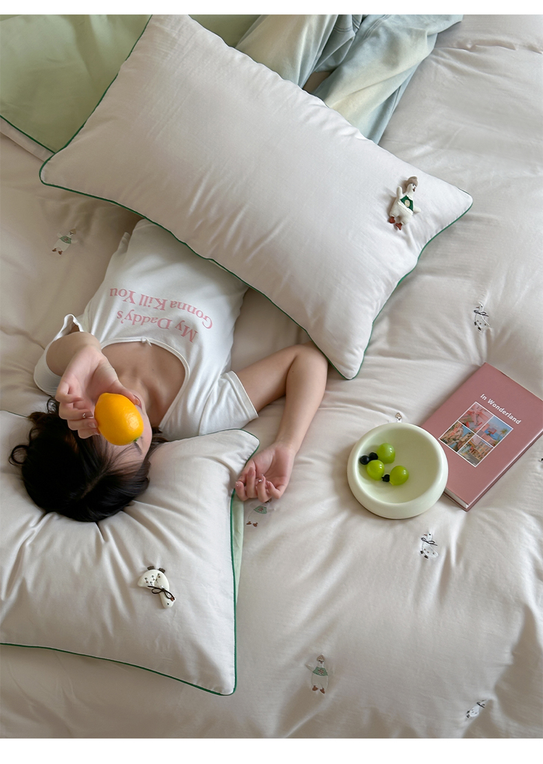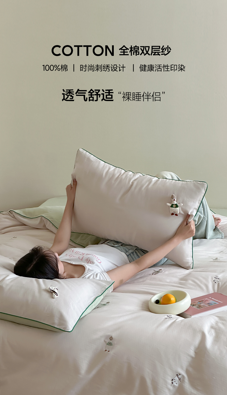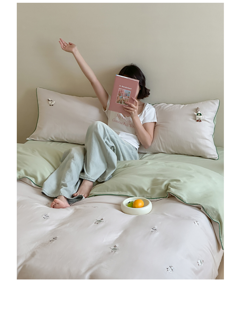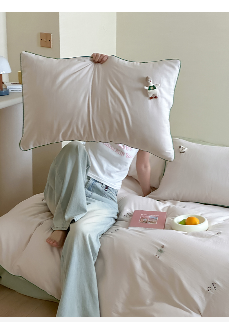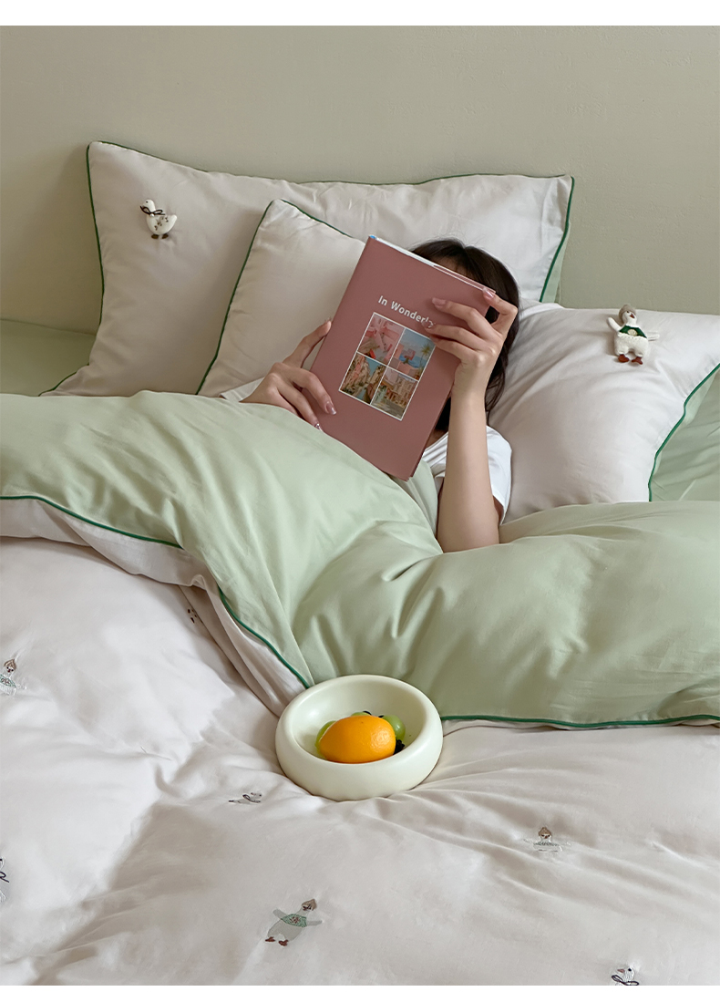 当前位置: 91家纺网 > 商品网购 > 床品套件 > 四件套 > 其它四件套 > 卡巴伦家纺 2025双层纱-A类玩偶刺绣嵌条款四件套 绿意绣梦