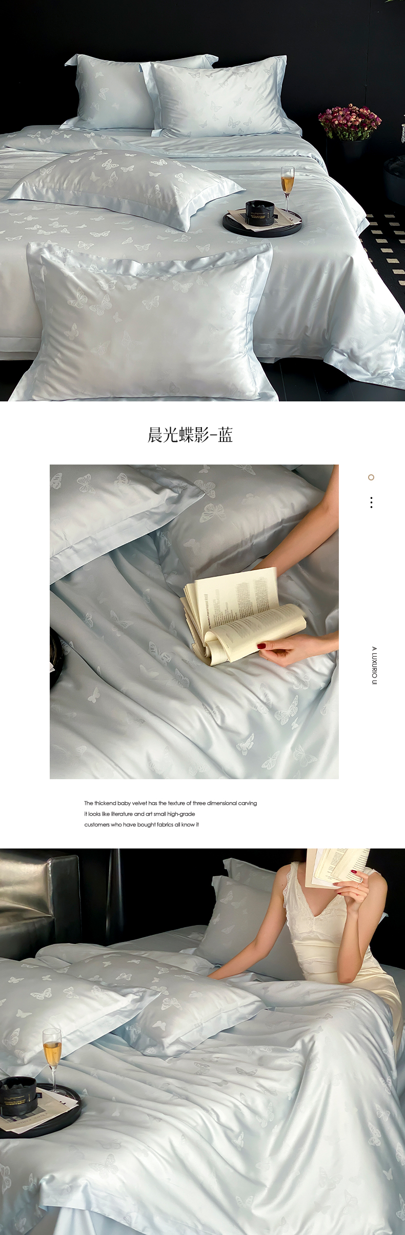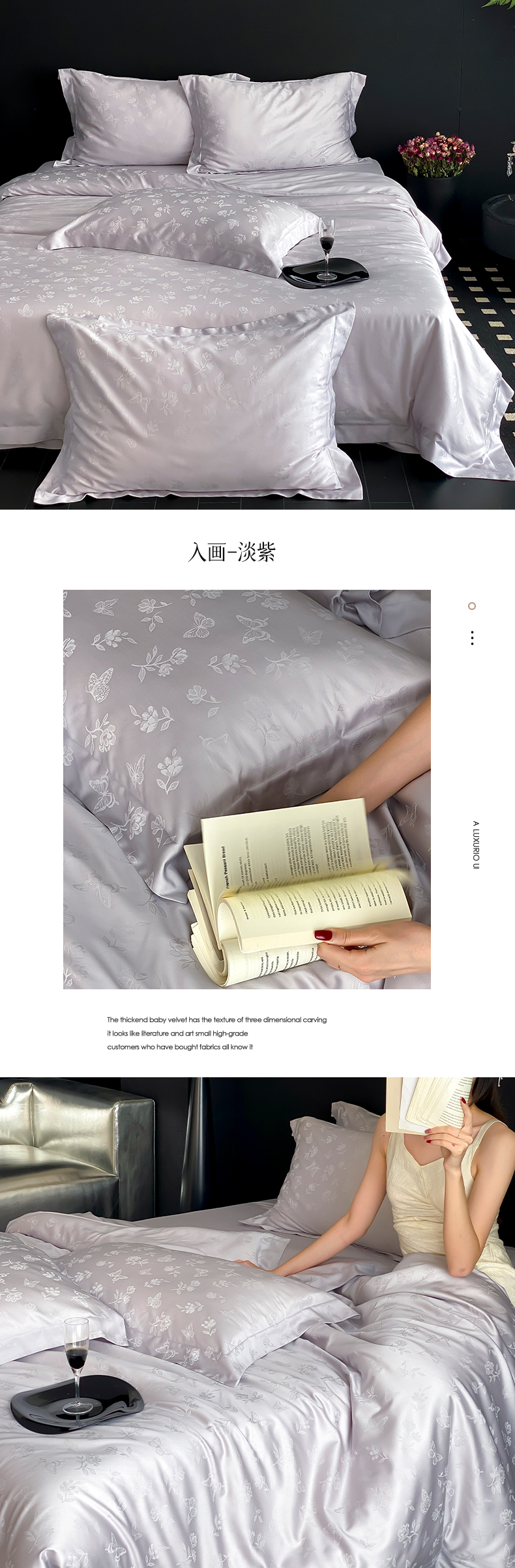 (总)云栖家居 2025秋冬新款50支纯色双拼加厚全棉磨毛被套刺绣100S纯棉四件套-小蝴蝶系列,粉灰,粉紫,蓝灰,米玉,月光黄