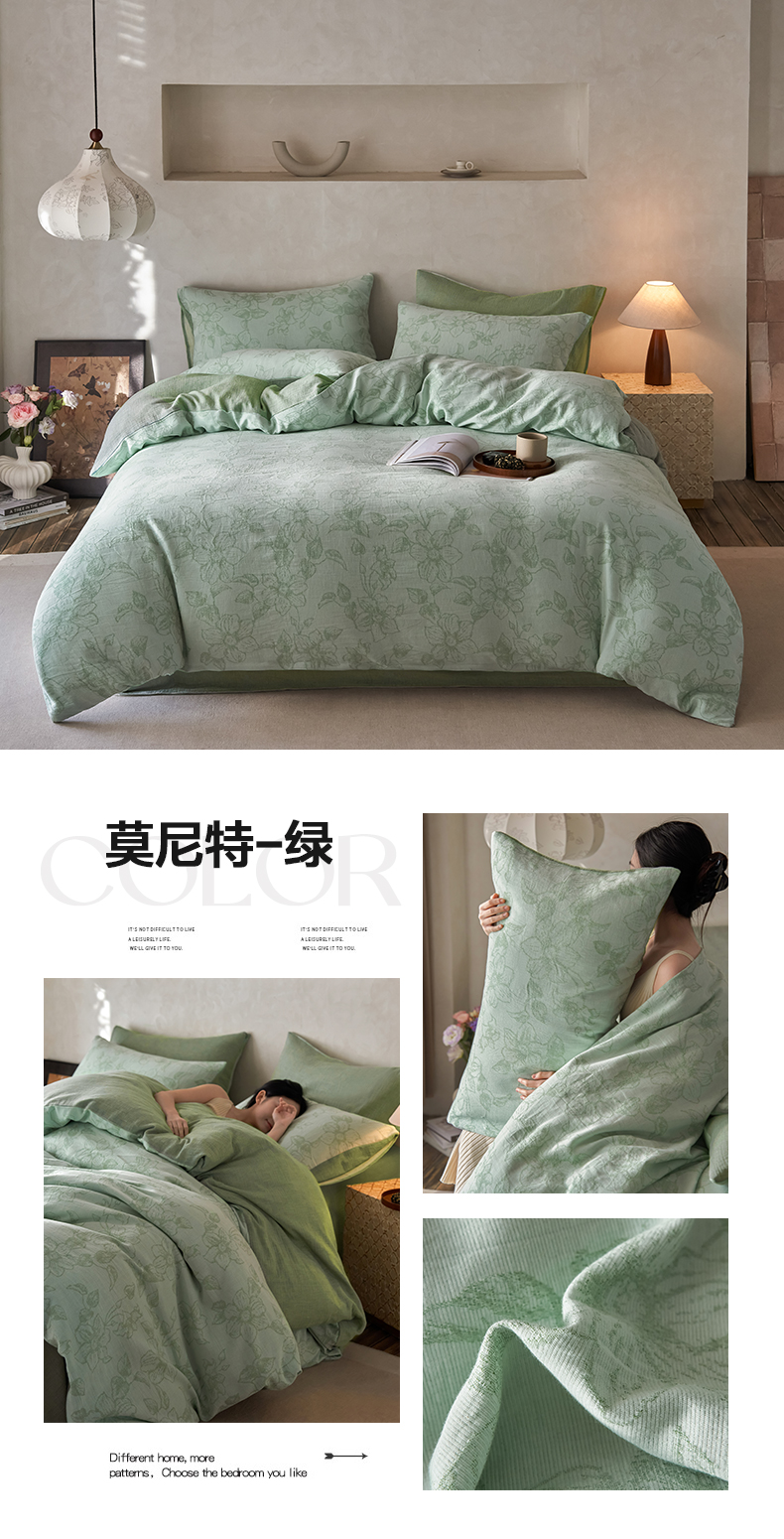 当前位置: 91家纺网 > 商品网购 > 床品套件 > 四件套 > 双层纱四件套 > 艾咪 新款全棉立体浮雕提花双层纱四件套-莫尼特-绿