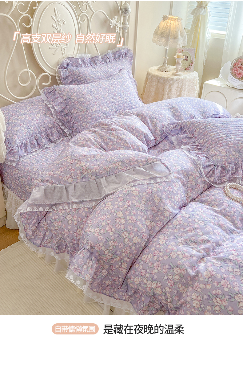 商品名称:(总)网红馆(ck家纺) 2025新款全棉印花双层纱床盖四件套