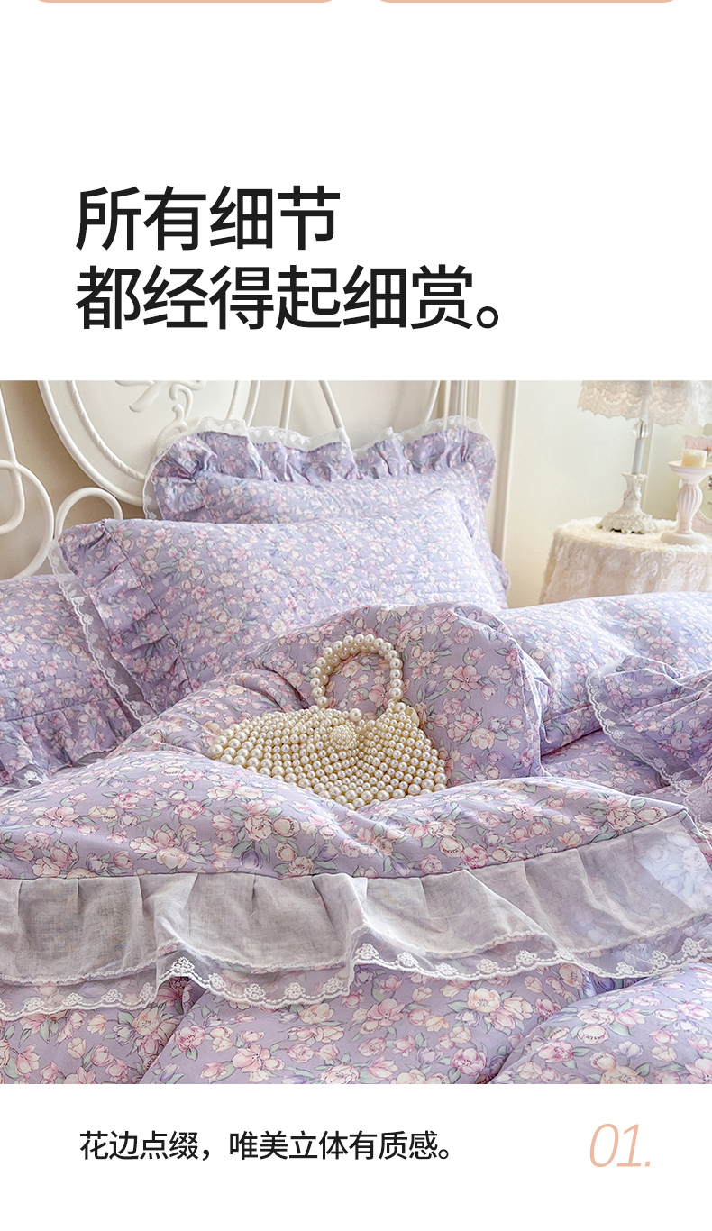 (总)网红馆(ck家纺) 2025新款亲肤舒适牛奶绒蕾丝边床裙四件套-秘密花园,秘密花园-粉色,秘密花园-卡其,秘密花园-米色,秘密花园-紫色