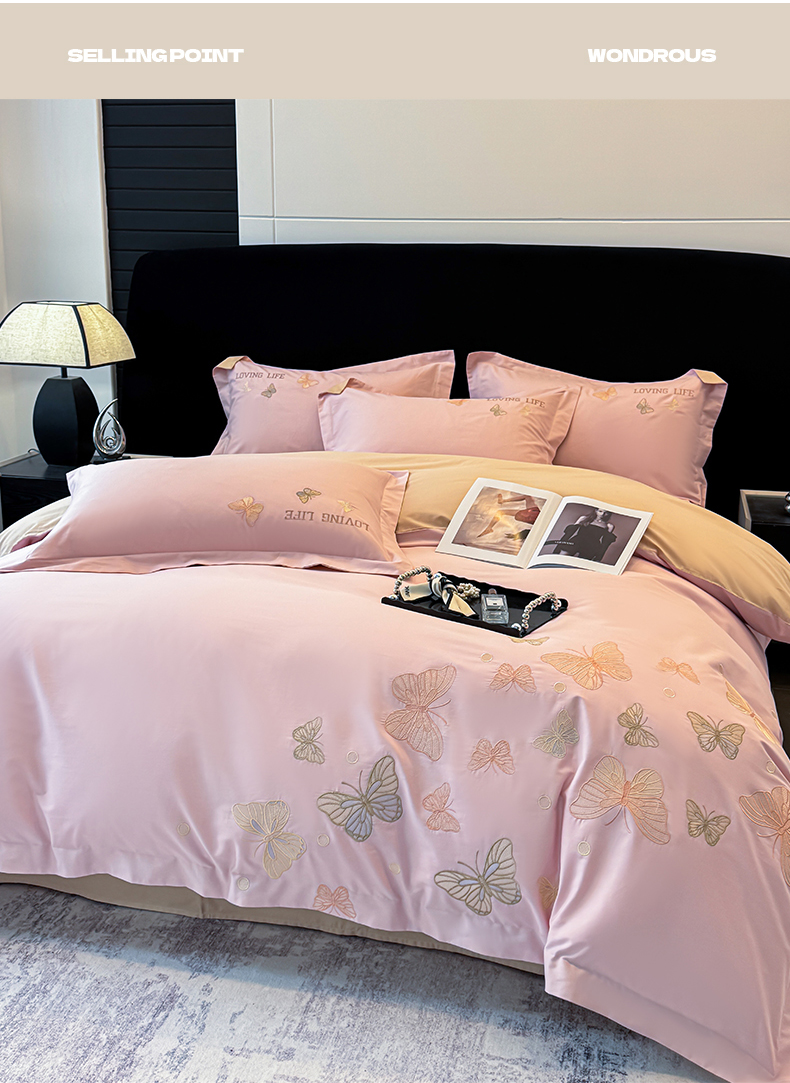 懒猫2025新款高精密40支13374全棉喷气绣花四件套 【带礼盒】 蝴蝶花园-粉