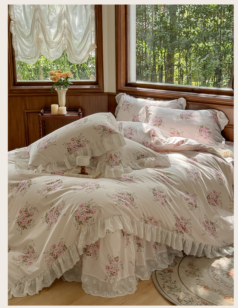 当前位置: 91家纺网 > 商品网购 > 床品套件 > 四件套 > 全棉普通四件套 > (总)菊上家纺 2025新款全棉法式花边款床裙四件套