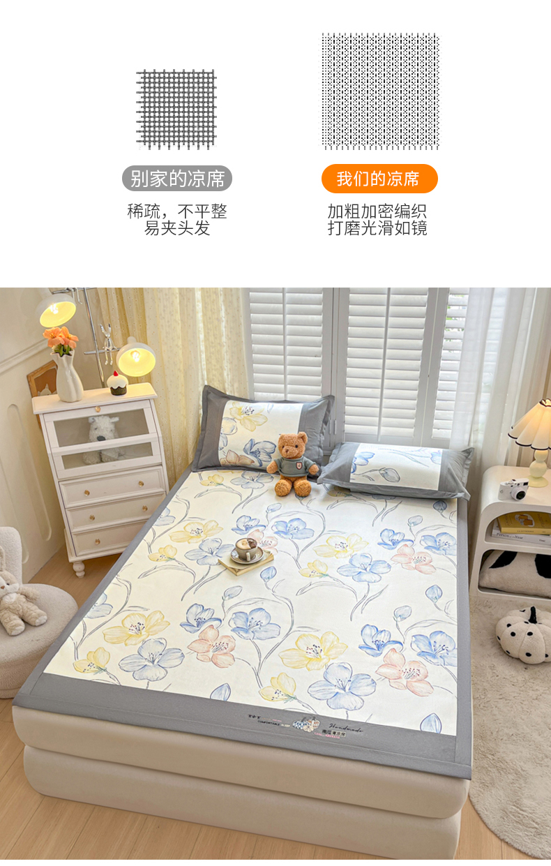 (总)航途席业 2025新款印花冰藤席凉席-成人款, 快乐熊,新百合,小兰花,小企鹅