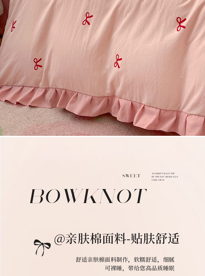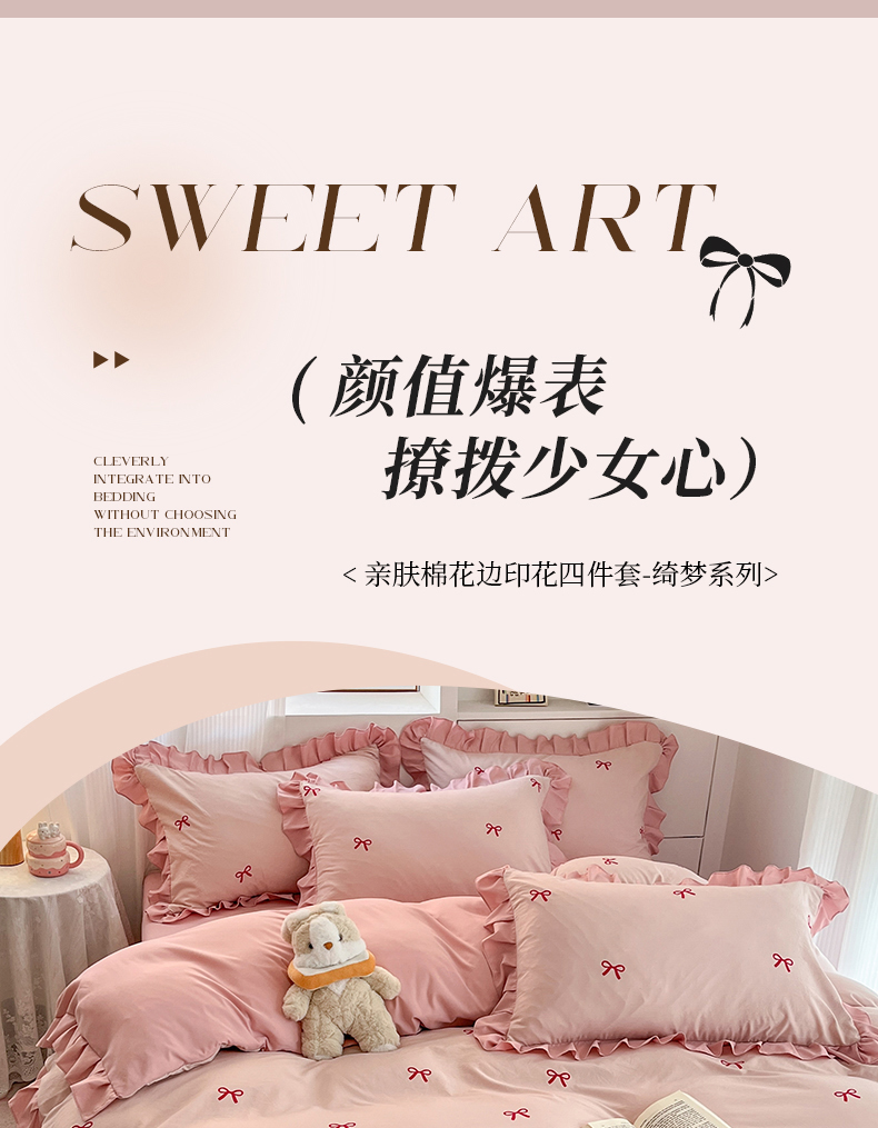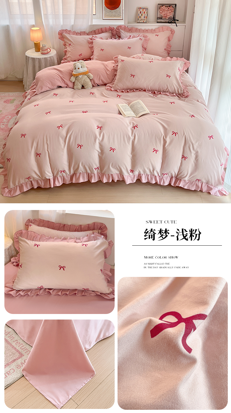 当前位置: 91家纺网 > 商品网购 > 床品套件 > 四件套 > 普通磨毛四件套 > 苏源家纺2025新款 公主风荷叶边亲肤棉磨毛四件套 绮梦-浅粉